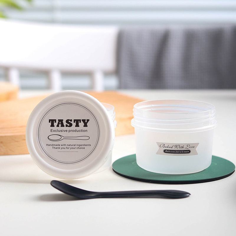 • 항아리 + 흰색 스티커 + 투명 스푼