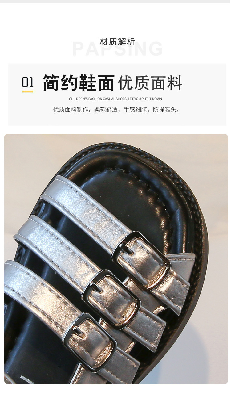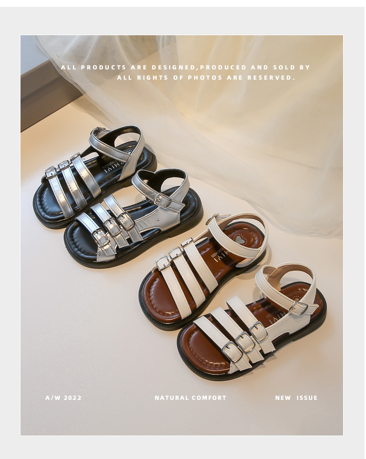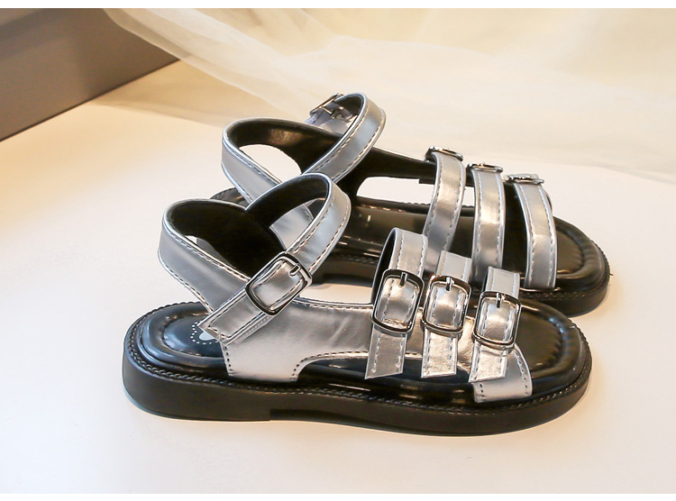 어린 소녀 오픈 토우 로마 샌들 2025 여름 새로운 한국 스타일 공주 신발 큰 어린이를위한 서양식 중공 해변 신발