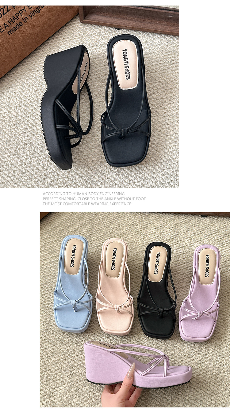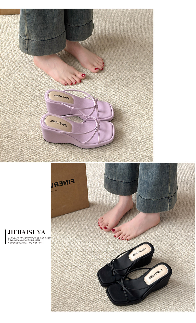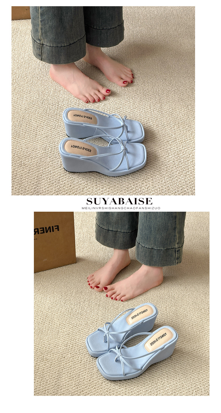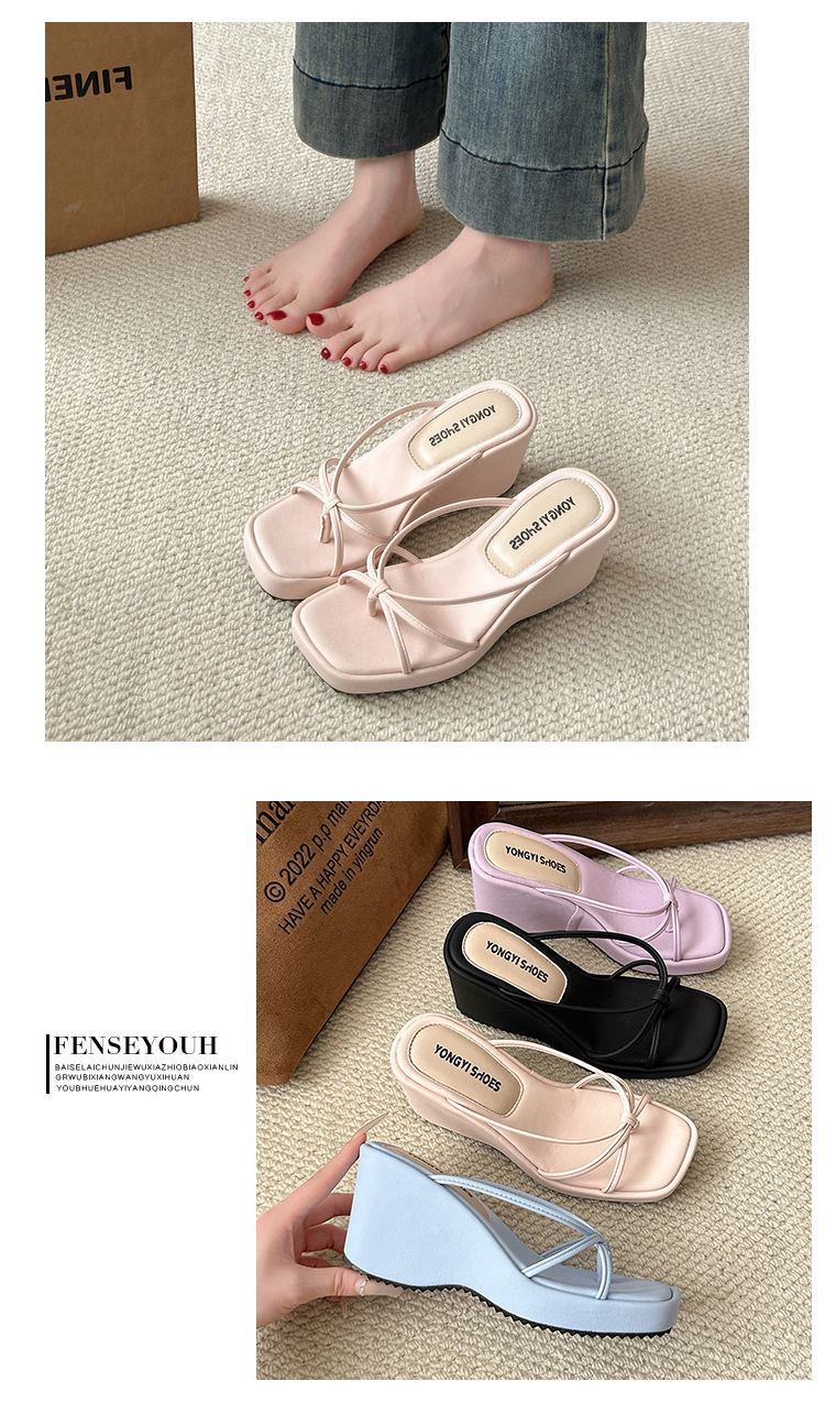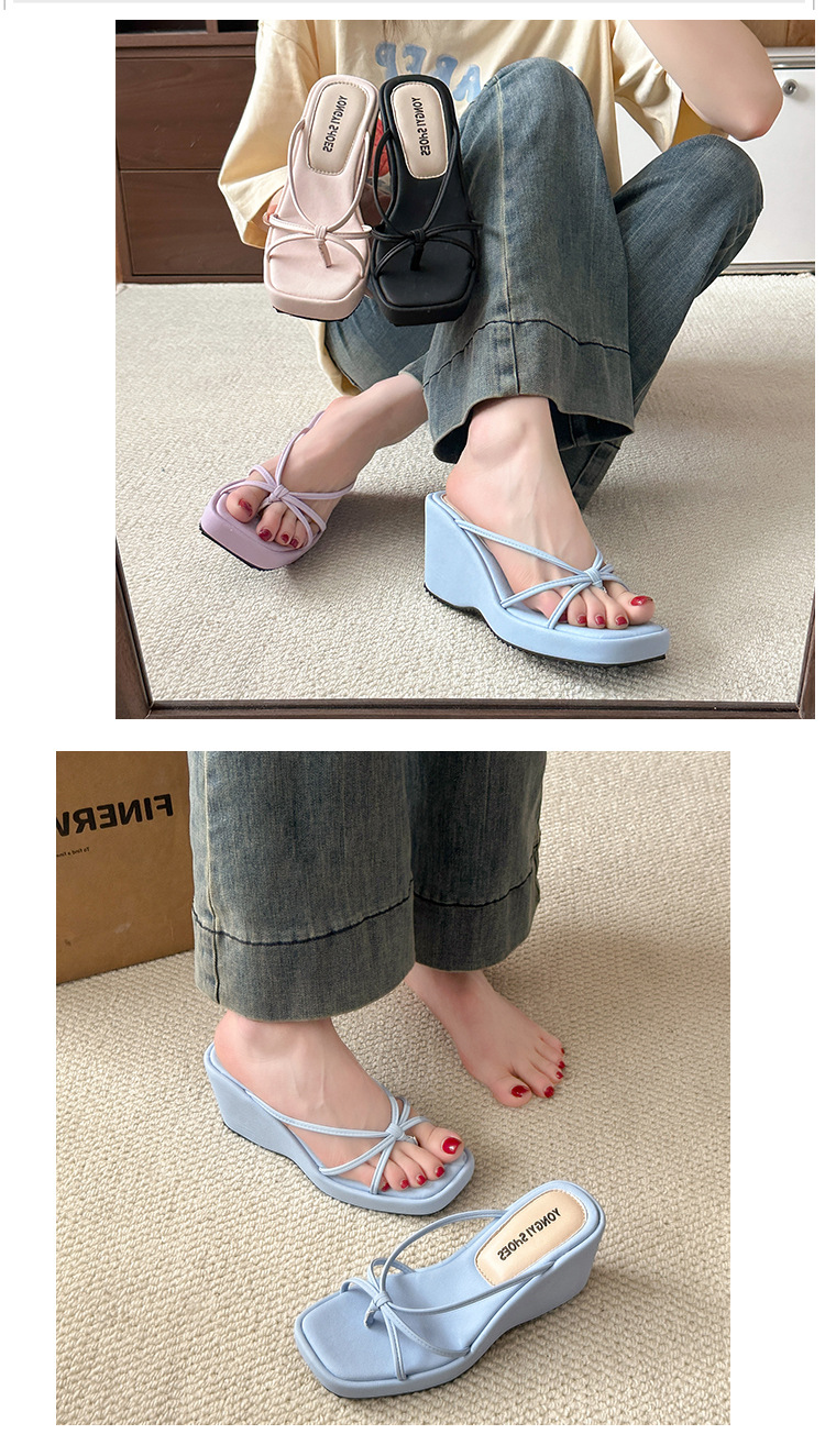 여름 클립온 얇은 스트랩 웨지 슬리퍼 두꺼운 밑창 2025 새로운 스타일 플랫폼 스퀘어 토 요정 스타일 여성용 슬리퍼스토어 가기