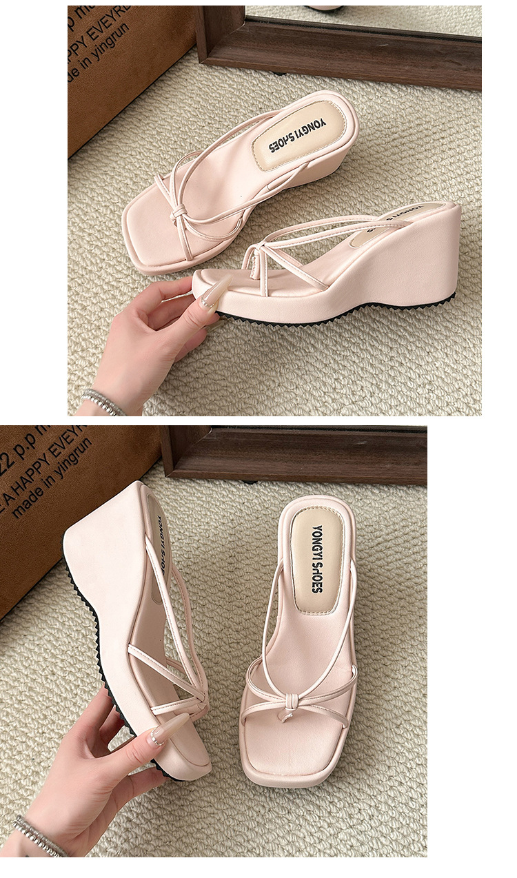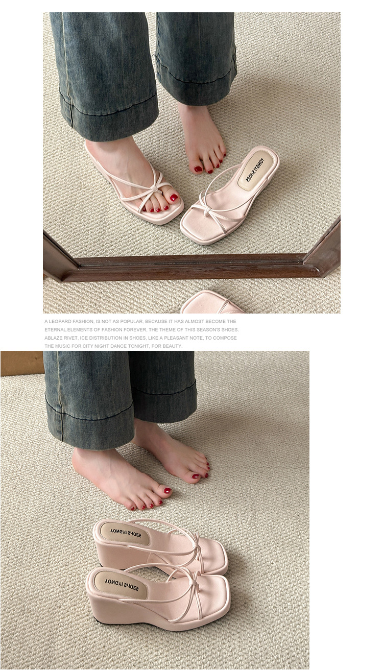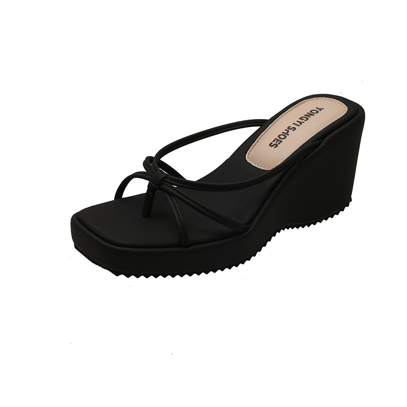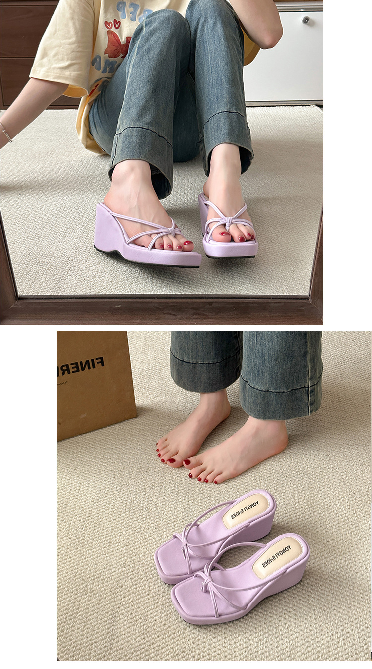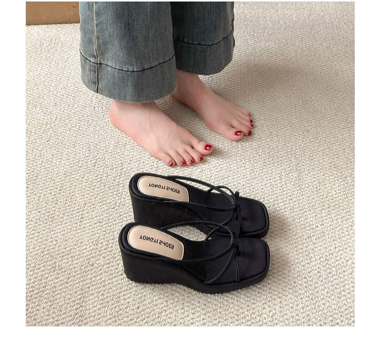 여름 클립온 얇은 스트랩 웨지 슬리퍼 두꺼운 밑창 2025 새로운 스타일 플랫폼 스퀘어 토 요정 스타일 여성용 슬리퍼스토어 가기