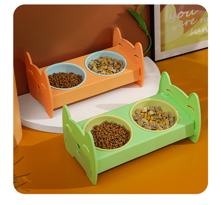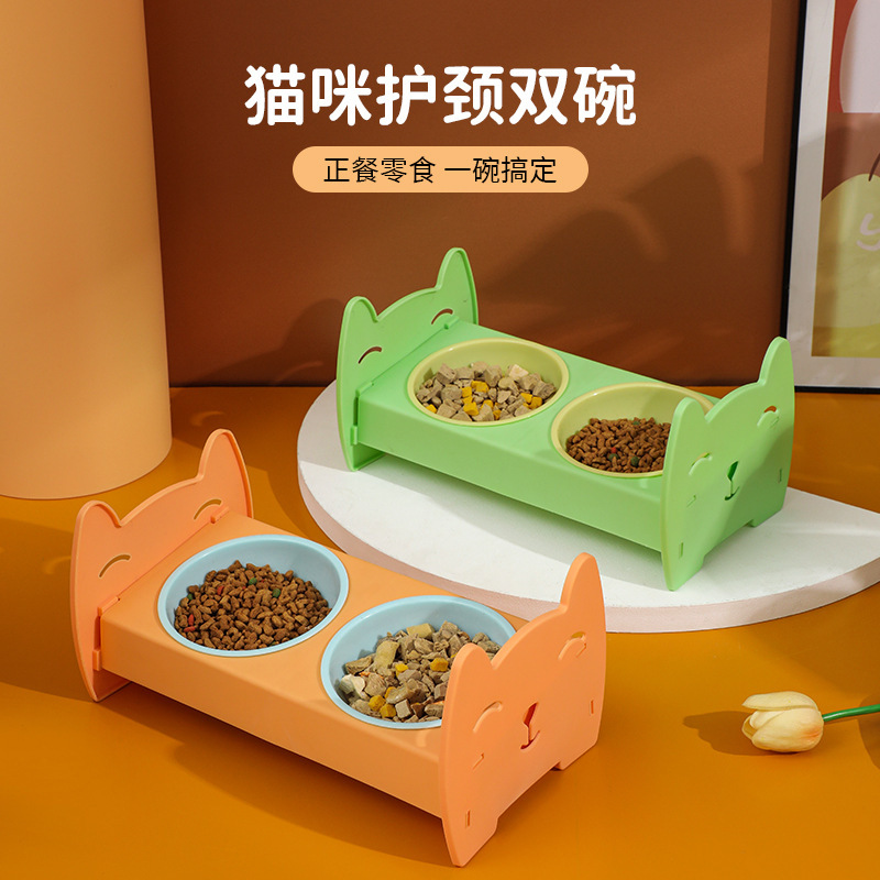 애완동물 그릇, 플라스틱 그릇 홀더, 고양이 식기, 개 이중 그릇, 먹이 및 물, 이중 용도 경추 보호 고양이 그릇