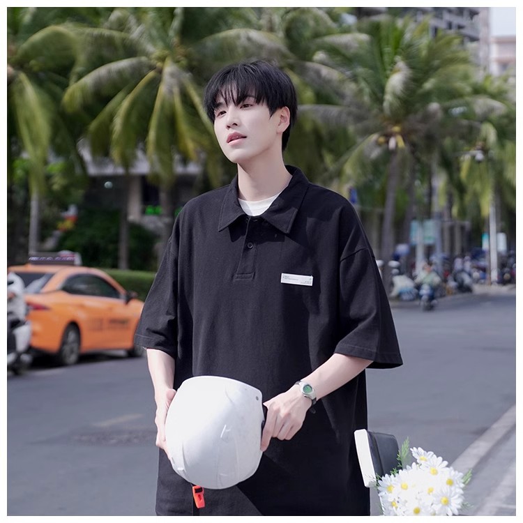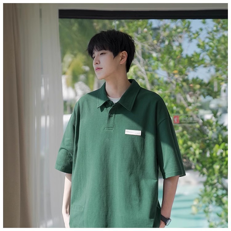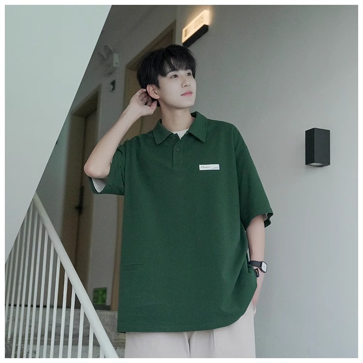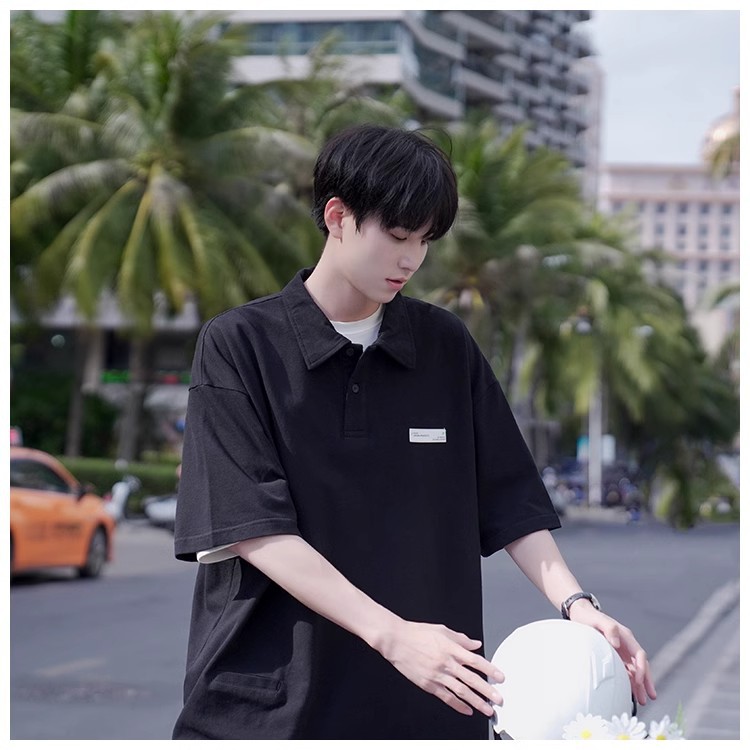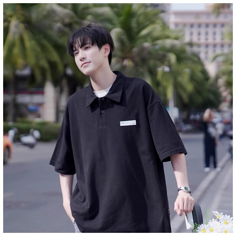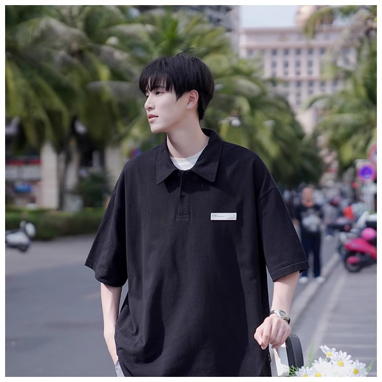 여름 신작 폴로 셔츠 반팔 남성 홍콩 스타일 루즈 캐주얼 다재다능한 청소년 라펠 5부 소매 티셔츠 탑스토어 가기