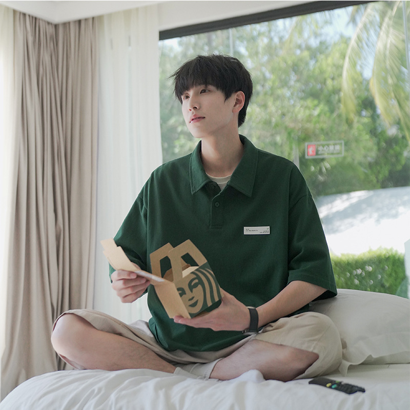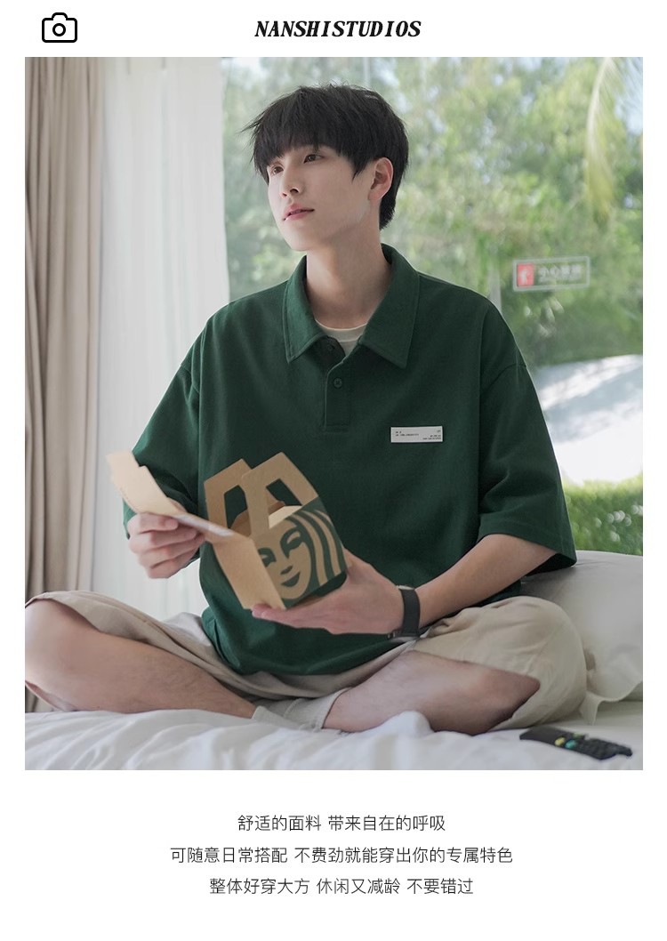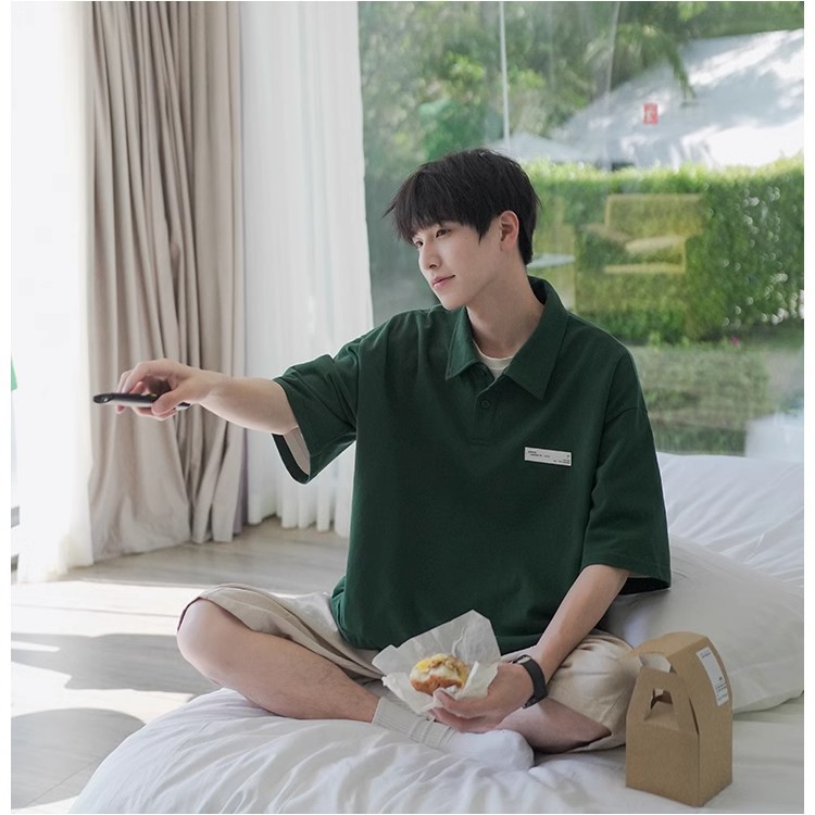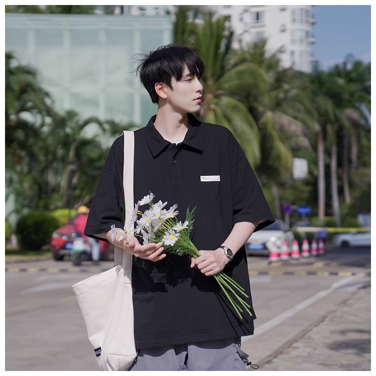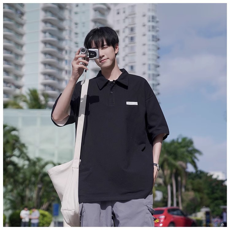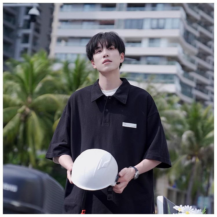 여름 신작 폴로 셔츠 반팔 남성 홍콩 스타일 루즈 캐주얼 다재다능한 청소년 라펠 5부 소매 티셔츠 탑스토어 가기