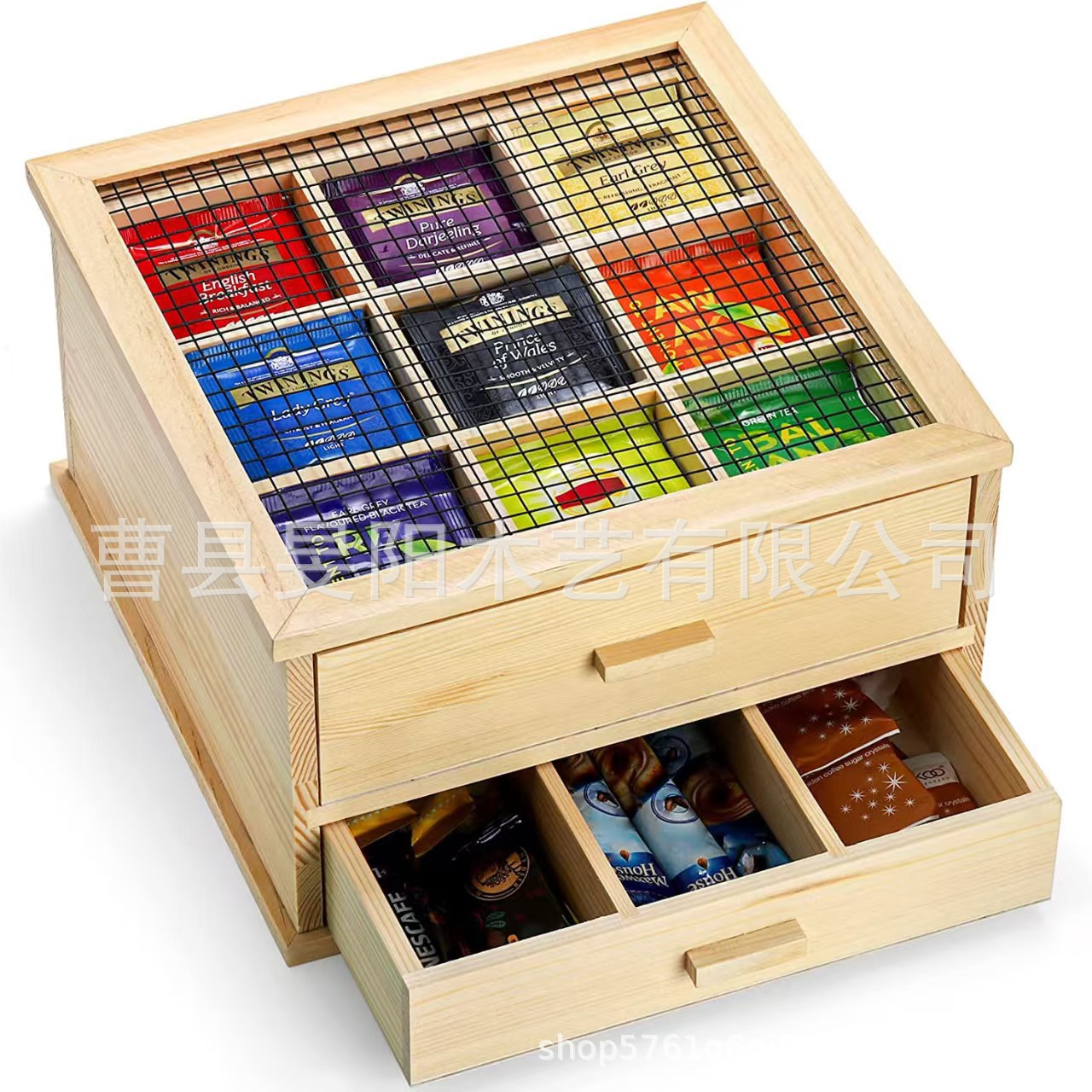 나무 보관 상자 서랍 형 멀티 그리드 가정용 티백 커피 캡슐 보관 상자 다기능 단단한 나무 보관 상자스토어 가기
