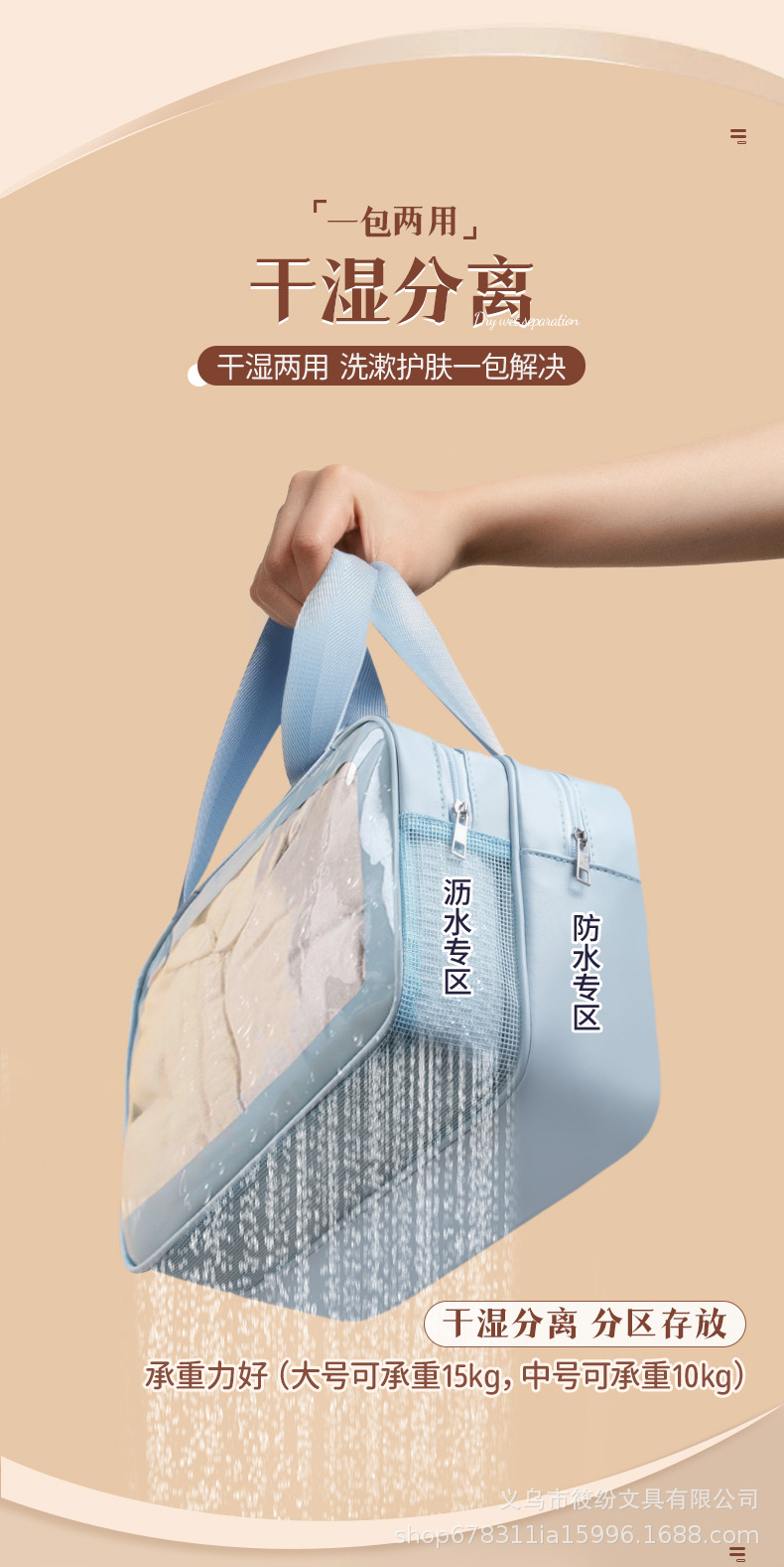 한국 스타일 휴대용 화장품 가방 PVC 건식 및 습식 분리 세면 용품 가방 휴대용 방수 목욕 및 수영 반투명 보관 가방스토어 가기