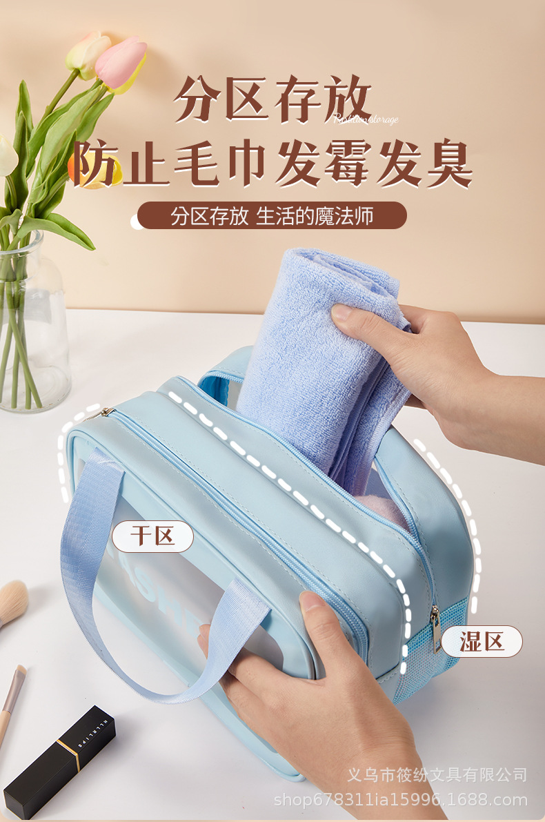 한국 스타일 휴대용 화장품 가방 PVC 건식 및 습식 분리 세면 용품 가방 휴대용 방수 목욕 및 수영 반투명 보관 가방