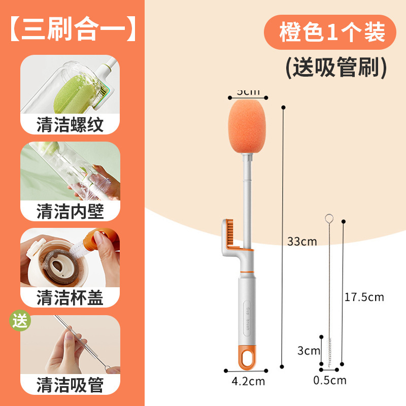 • 多功能杯刷●橙色★含海绵刷+杯口刷+杯缝刷★今日送吸