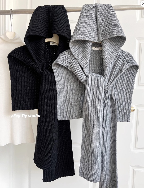 무거운 양모 디자인 센스 패션 니트 후드 목도리 여성의 가을과 겨울 따뜻한 올 매치 아우터 웨어