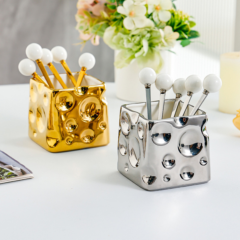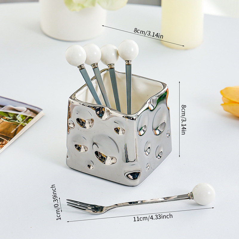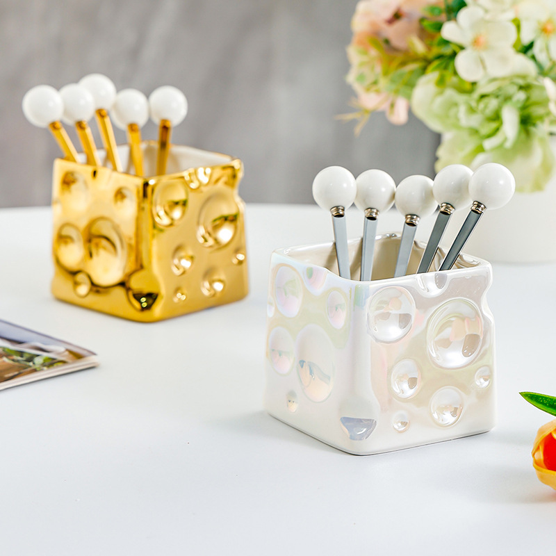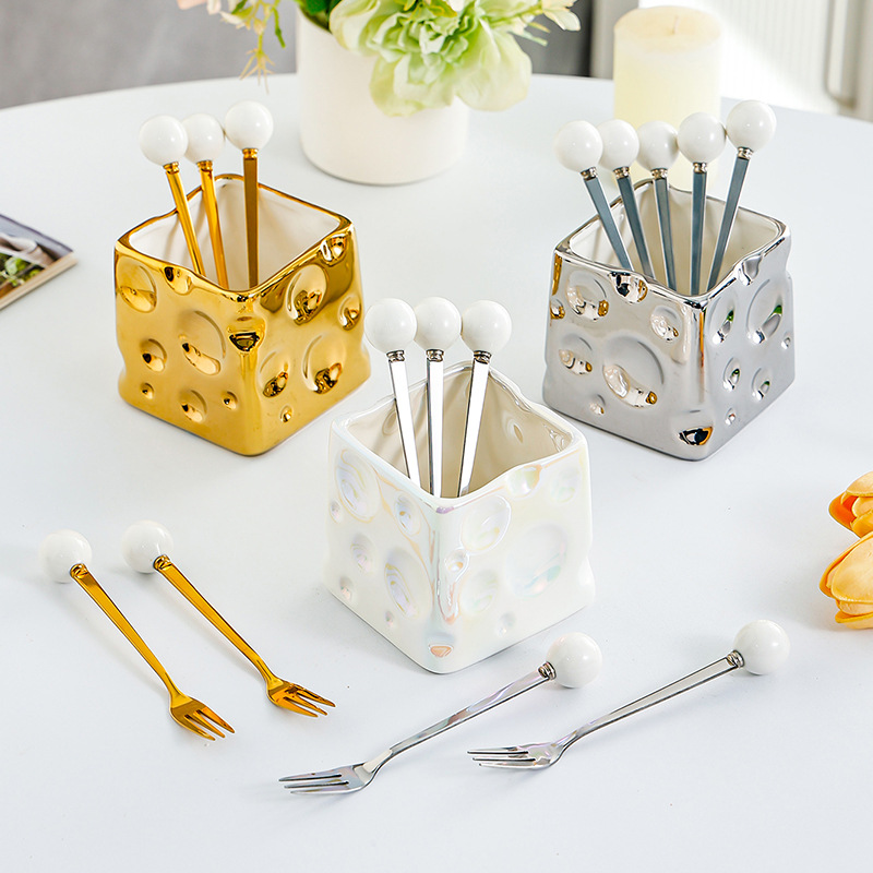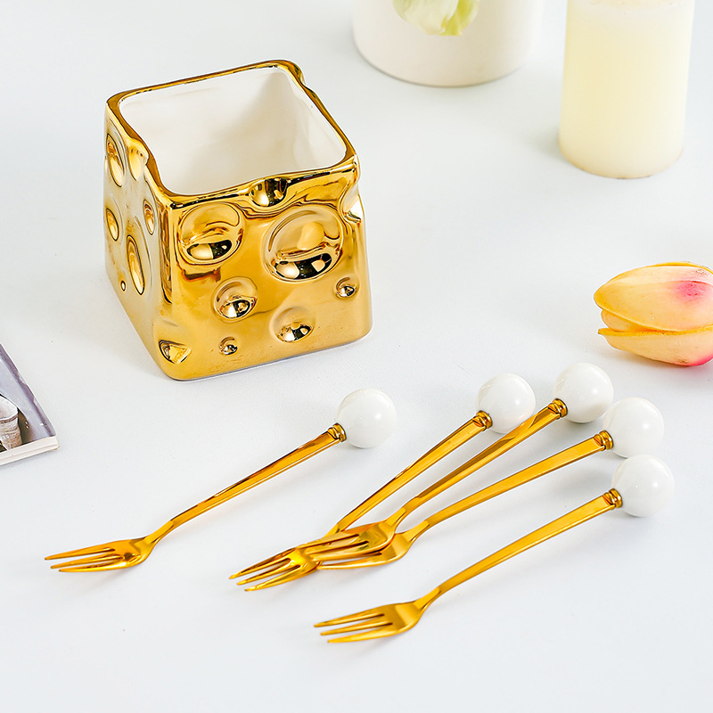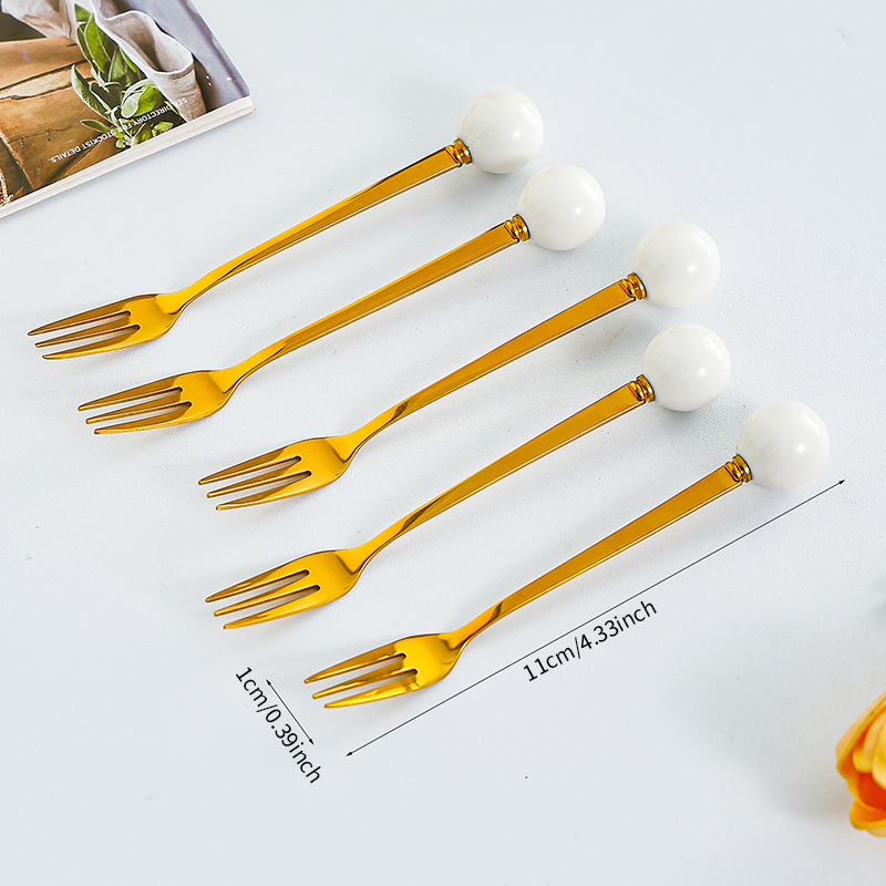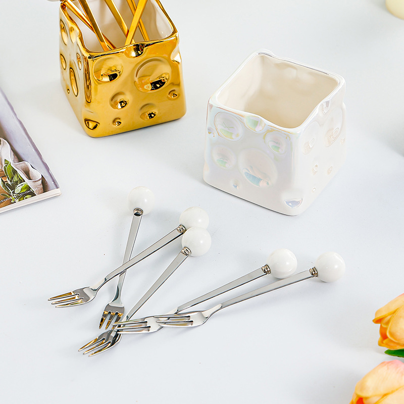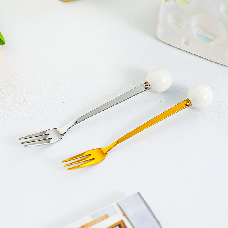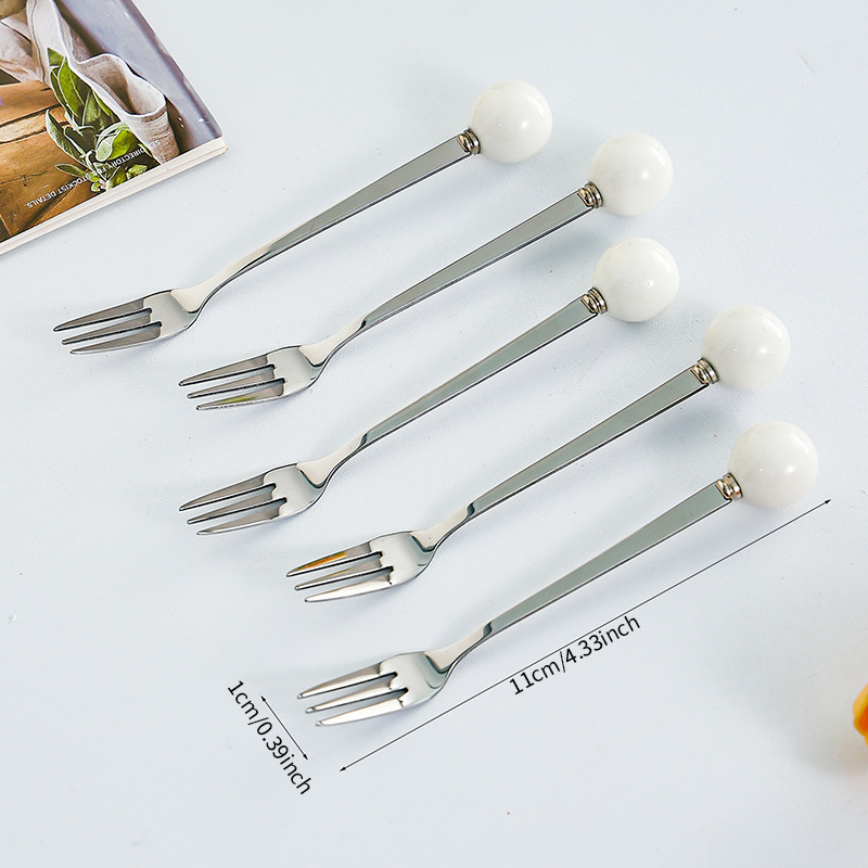 과일 포크 세트 가정용 디저트 케이크 작은 포크 저장 냄비 어린이 안전 스테인레스 스틸 과일 기호 높은 감각스토어 가기