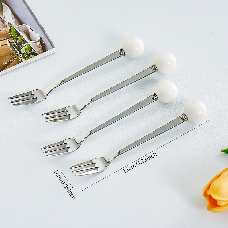 • 은색 포크 흰색 구슬 4개