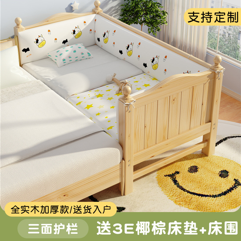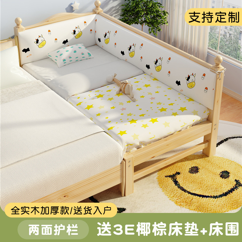단단한 나무 어린이 접합 침대 가드 레일이있는 어린이 침대 확대 아기 침대 소년 소녀 침대 옆 대형 침대 아기 접합 침대스토어 가기
