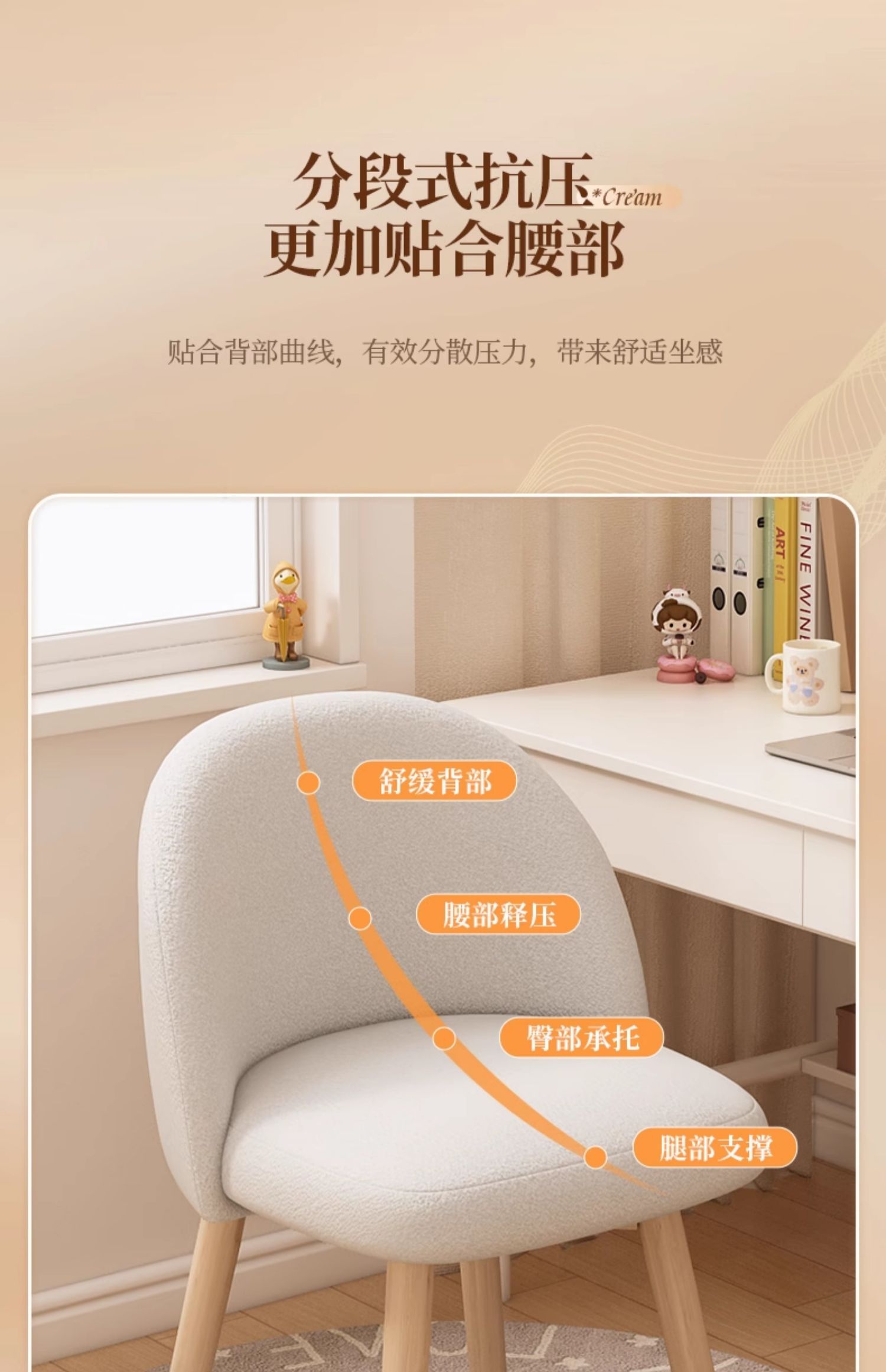 도매 간단한 크림 스타일 드레싱 의자 홈 소녀 침실 메이크업 의자 인터넷 연예인 ins 등받이 의자