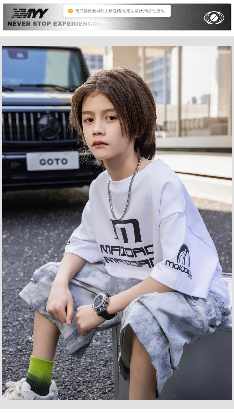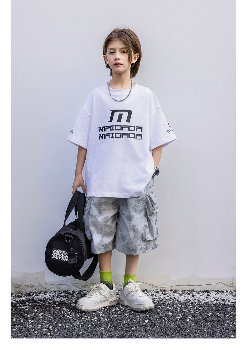 Panda Yuanyuan 2025 여름 새 소년 반팔 순수 코튼 Huzhou Zhili 아동 의류 아동 티셔츠 탑 도매