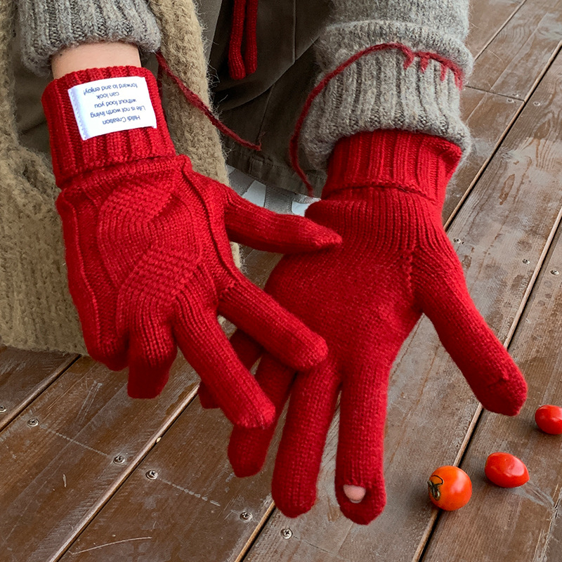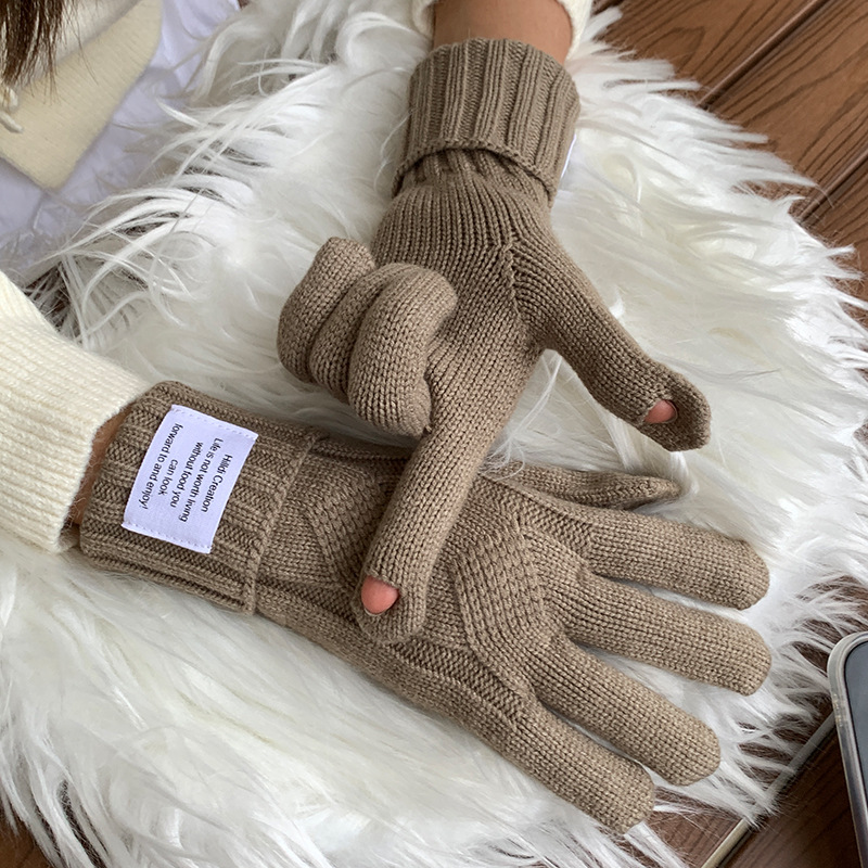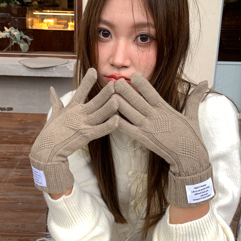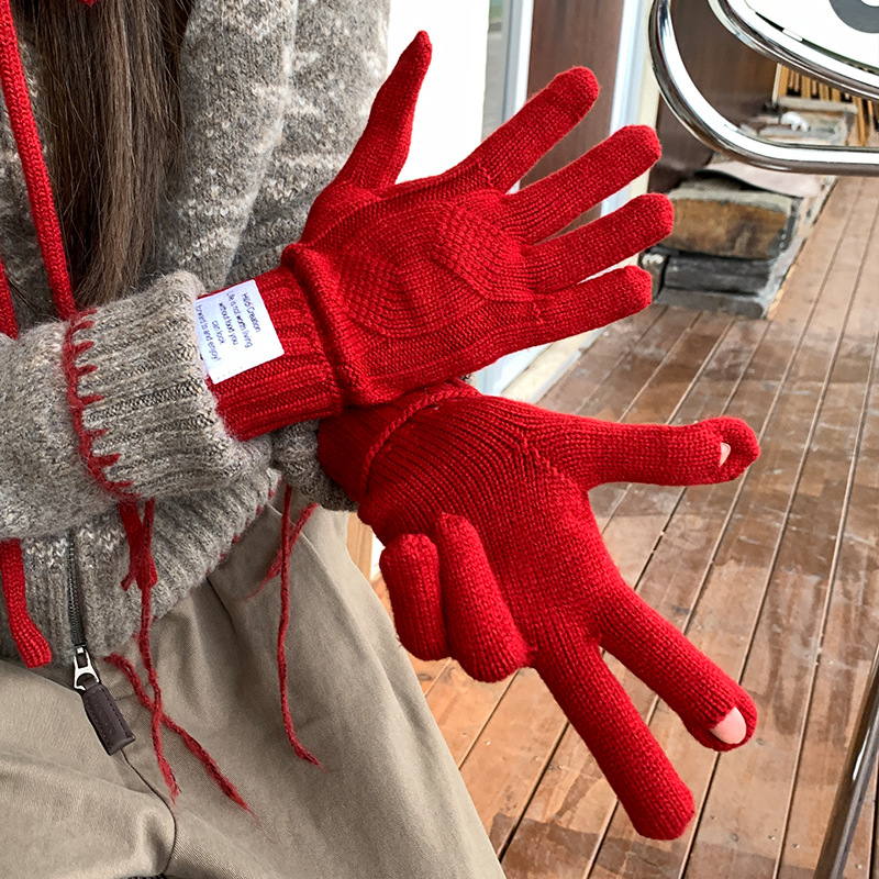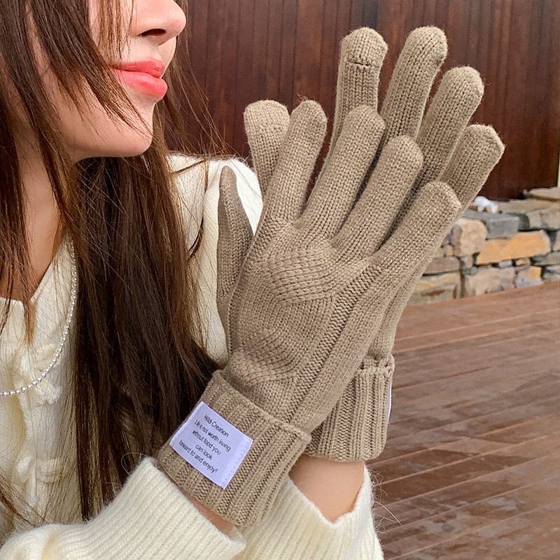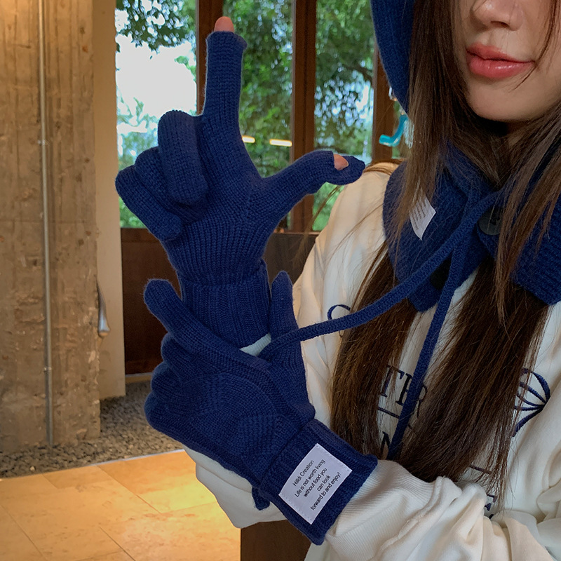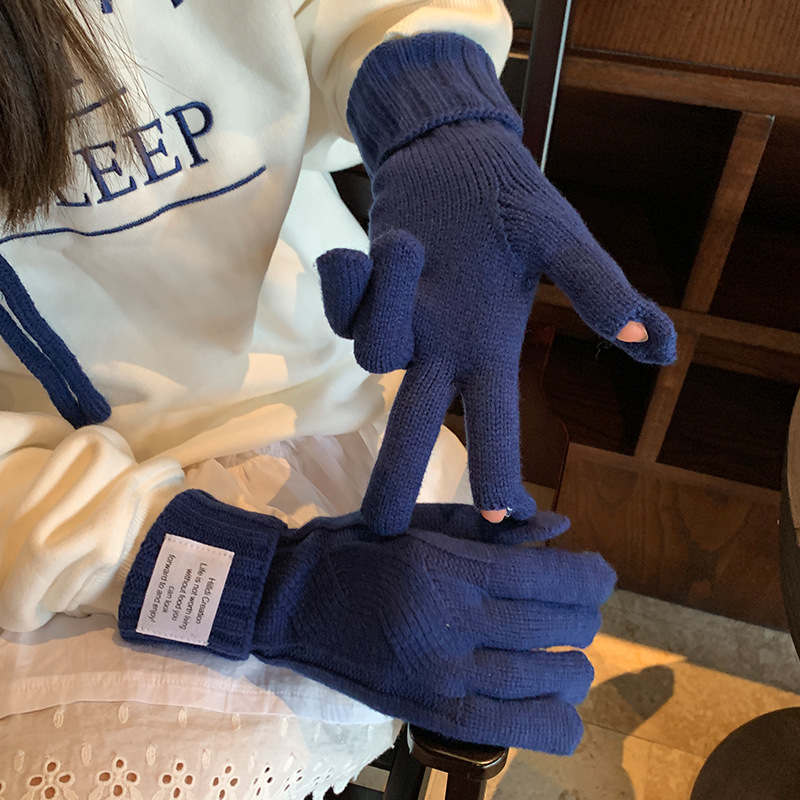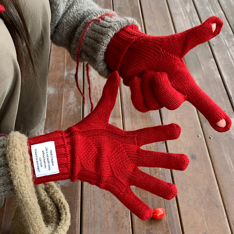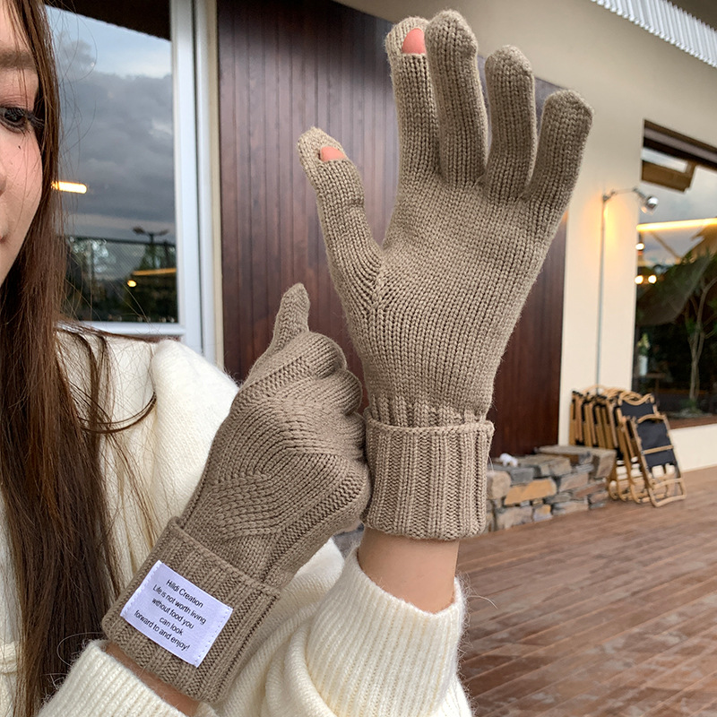 한국 겨울 따뜻한 장갑 5 인조 터치 스크린 니트 장갑 솔리드 컬러 울 학생 올매치 가을과 겨울 오픈 손가락