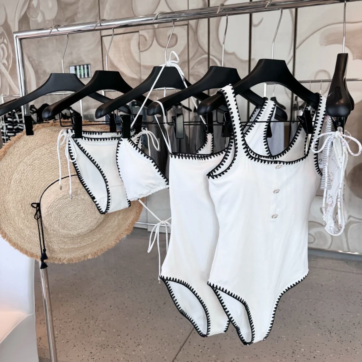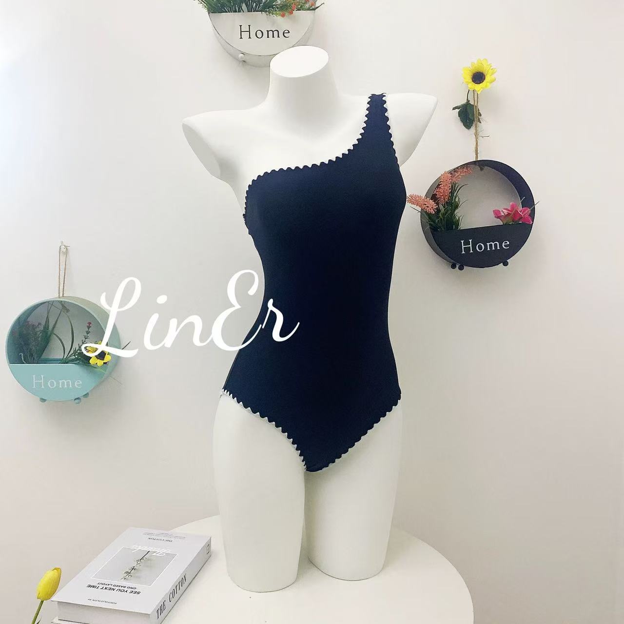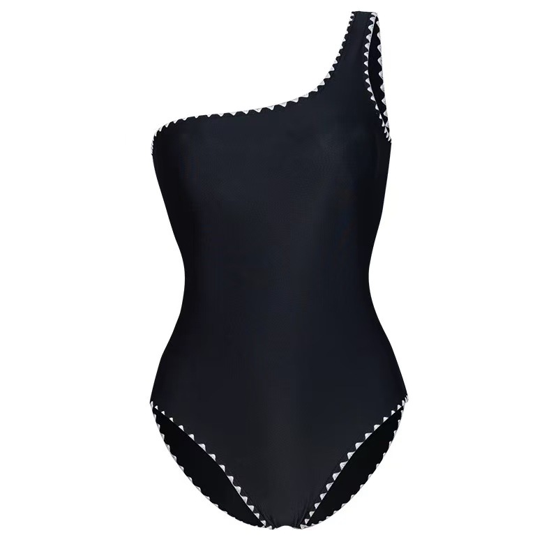 여성을 위한 도매 새로운 복고풍 테두리 원피스 수영복, 고급 스퀘어 칼라, 유럽 및 미국의 심플한 블랙 스파 비치 수영복스토어 가기