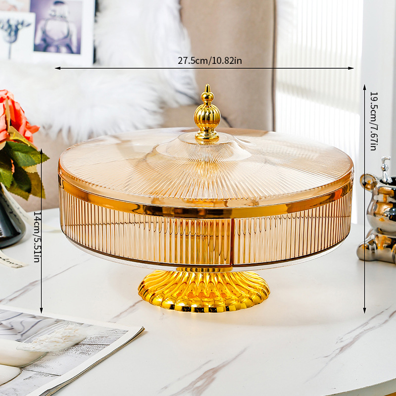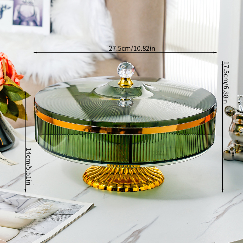 • 키가 큰 타워 비즈 과일 녹색 줄무늬 금테 사탕 상자 단일 레이어