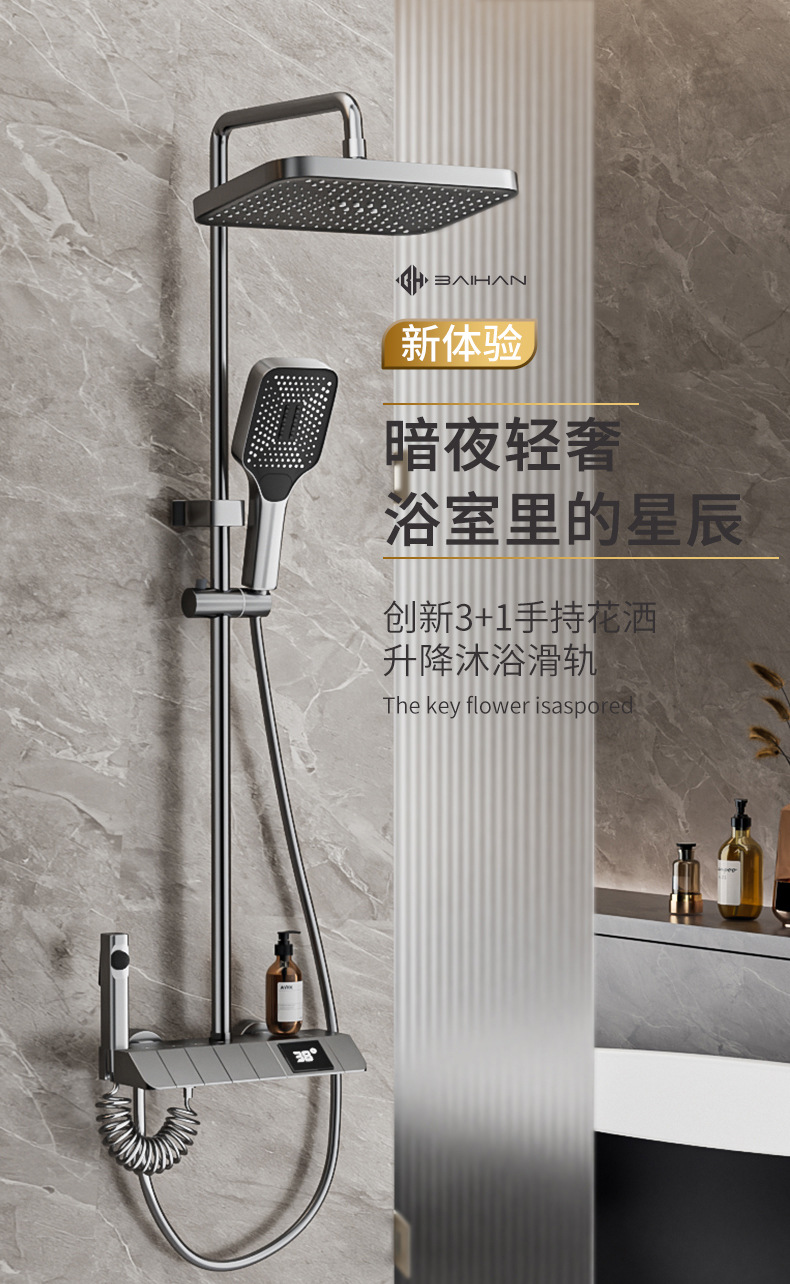 샤워 세트 모든 구리 가구 일정한 온도 욕실 화장실 총 먼지 비 압력 샤워 헤드 꽃 건조스토어 가기