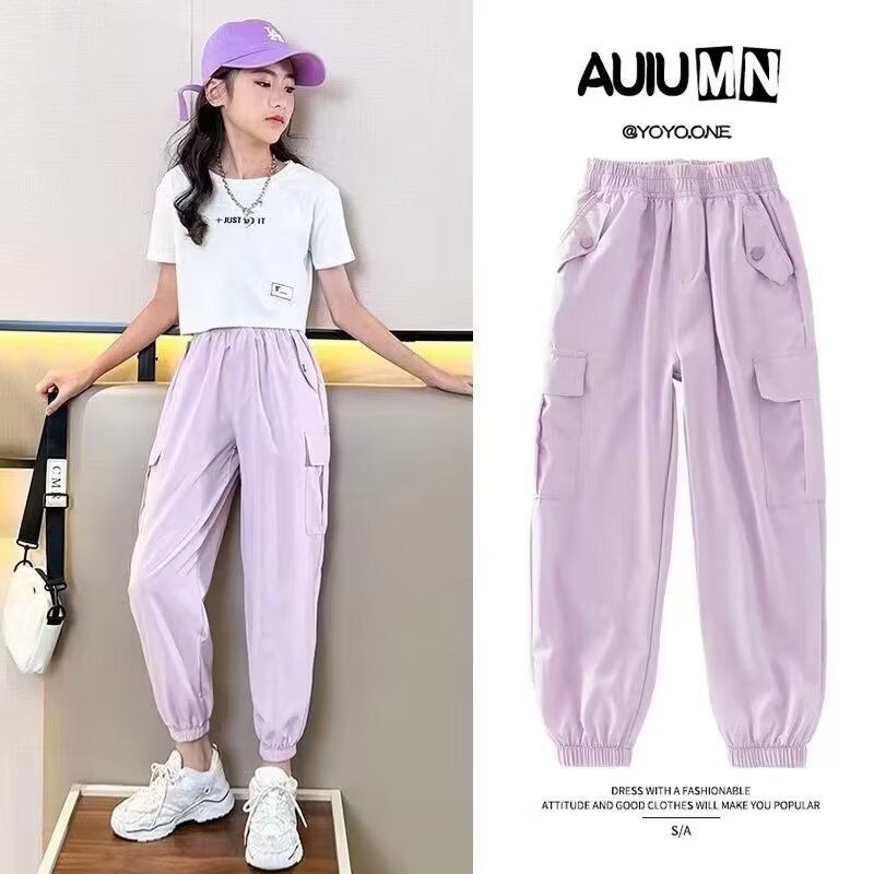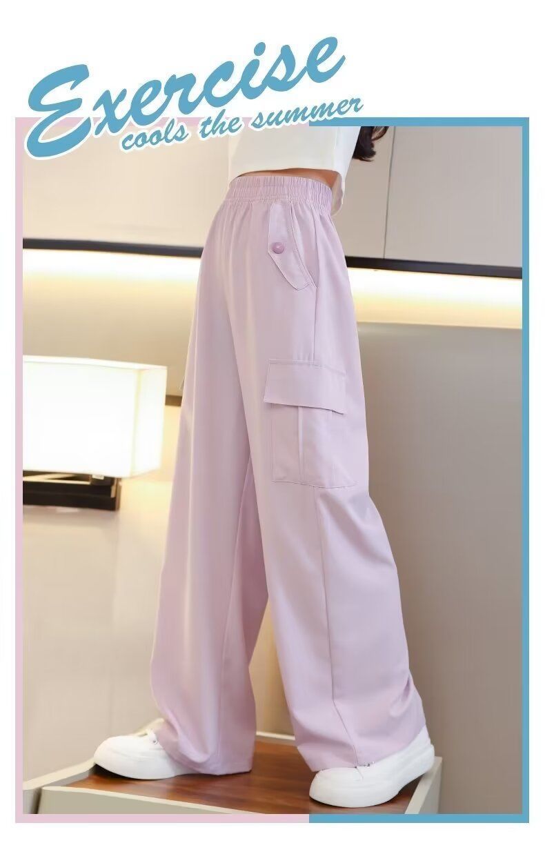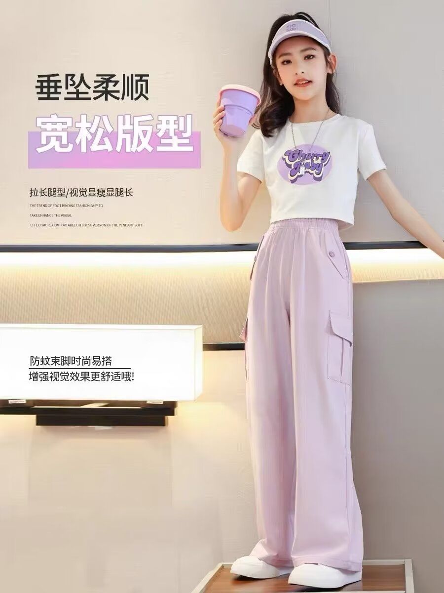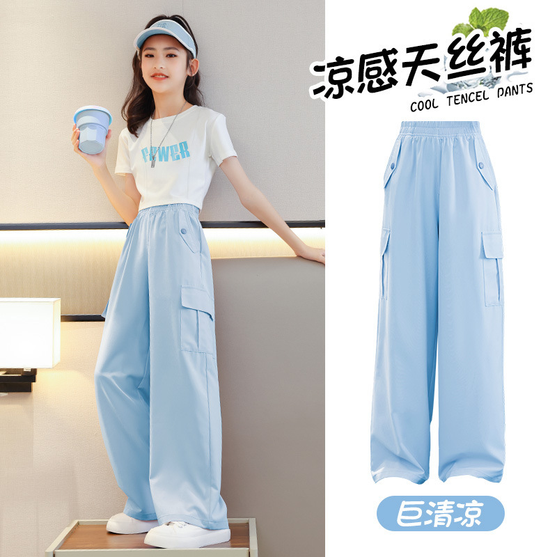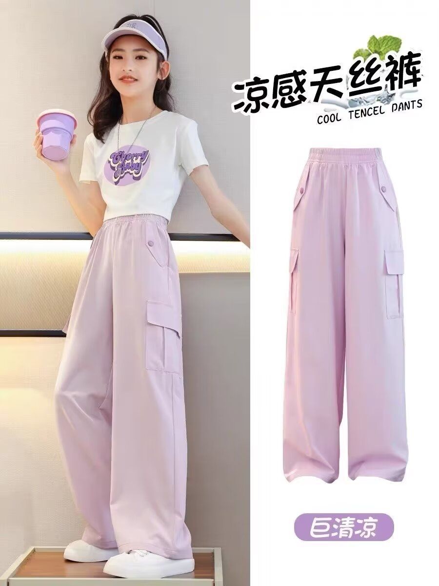 도매 여자 넓은 다리 바지 어린이 바지 아이스 실크 크록 바지 2025 새로운 모기 방지 바지 소녀 여름 바지스토어 가기