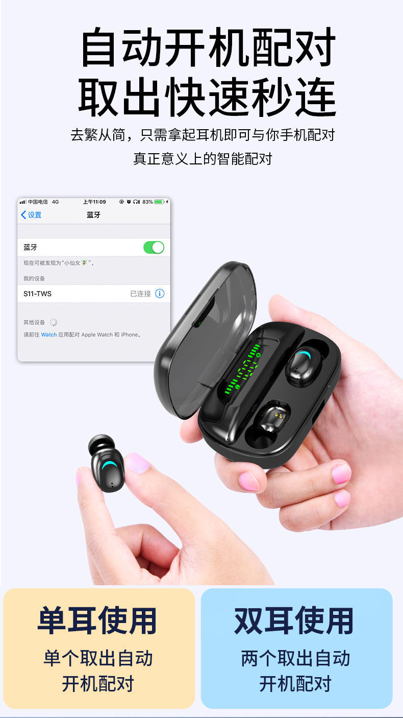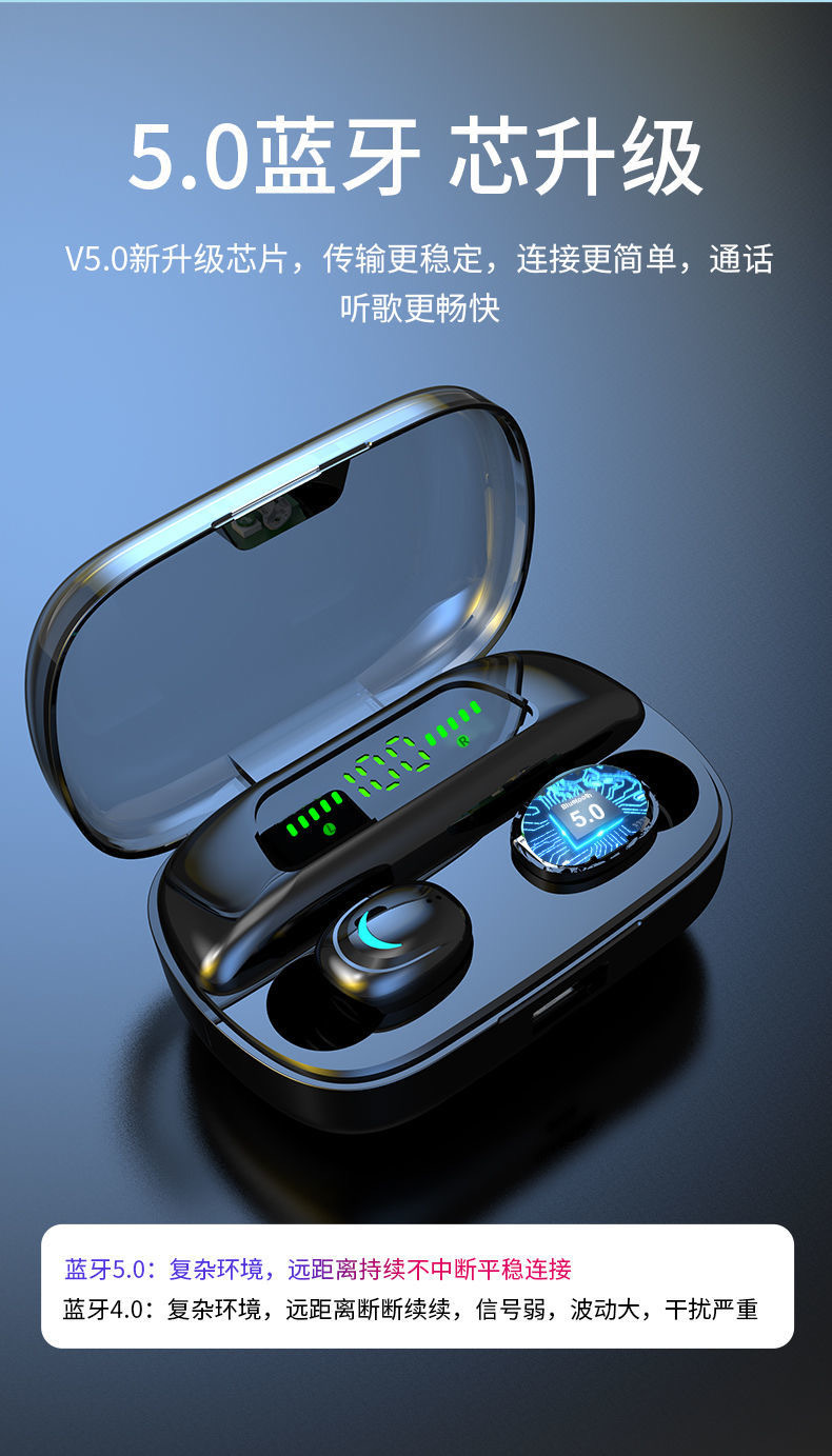 S112 블루투스 헤드셋 TWS 바이노럴 디지털 디스플레이 통화 음악 게임 스포츠 헤드셋 이어폰 미니 긴 배터리 수명