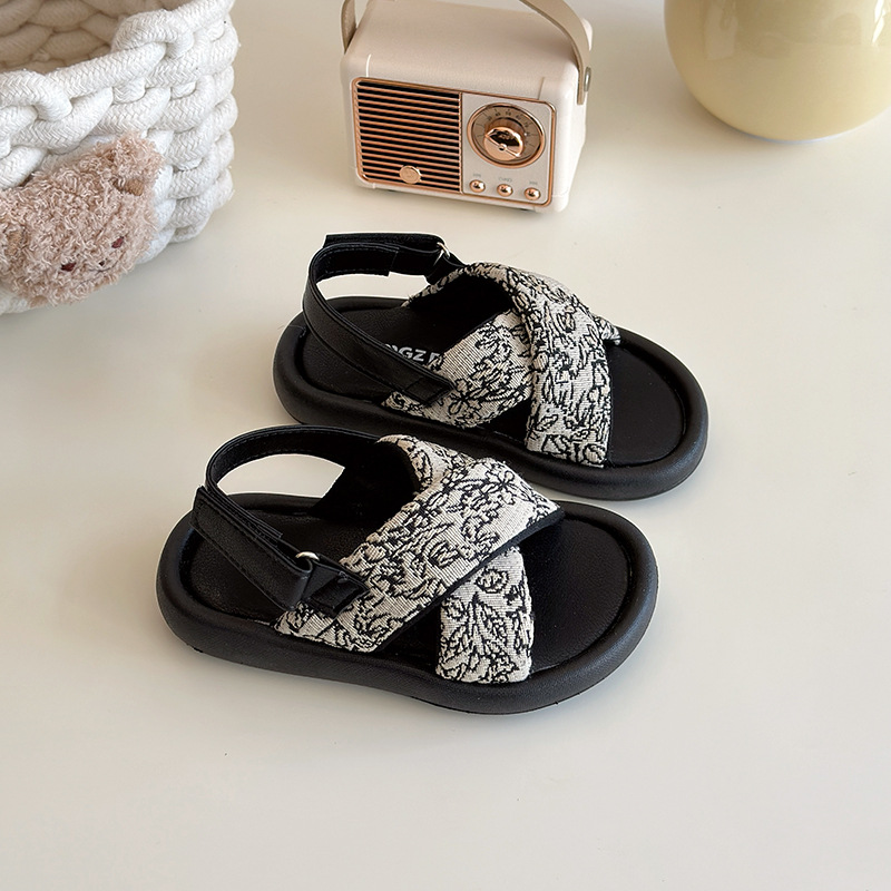 여자 오픈 발가락 벨크로 샌들 2025 여름 새로운 어린이 캐주얼 부드러운 바닥 해변 신발 어린이 신발스토어 가기