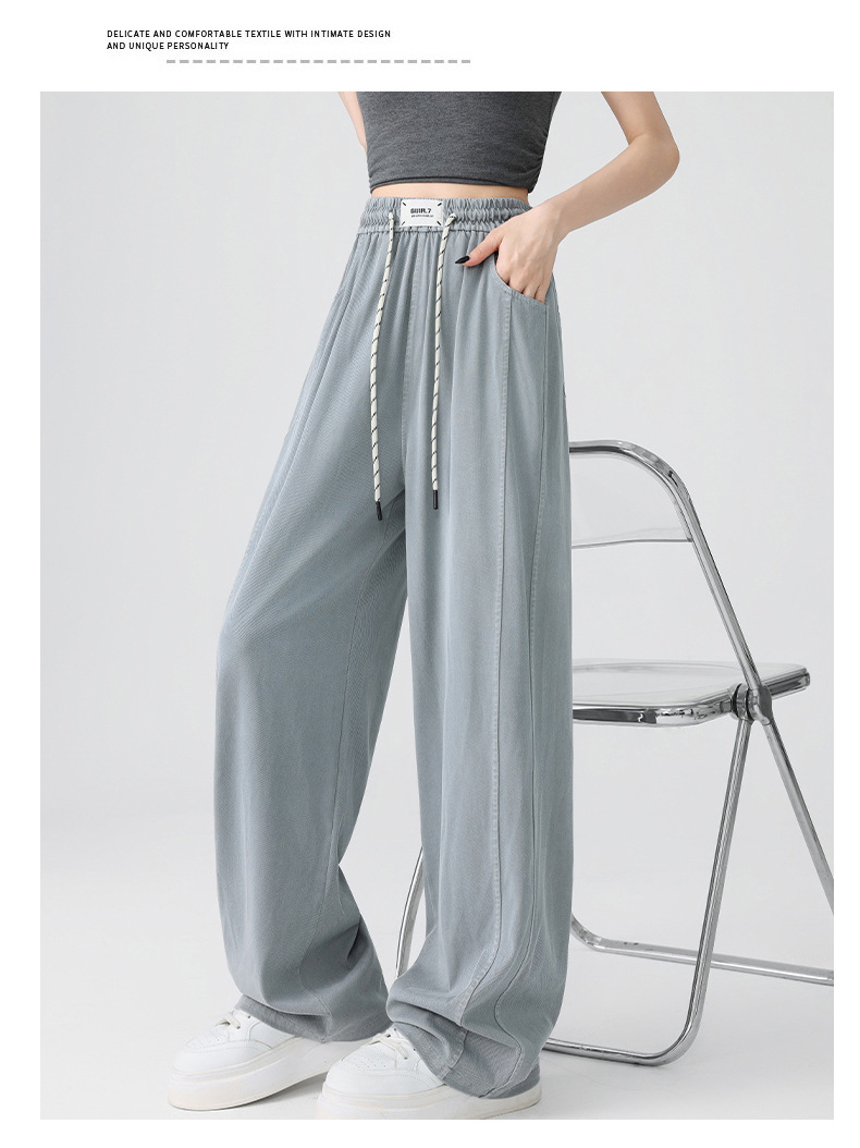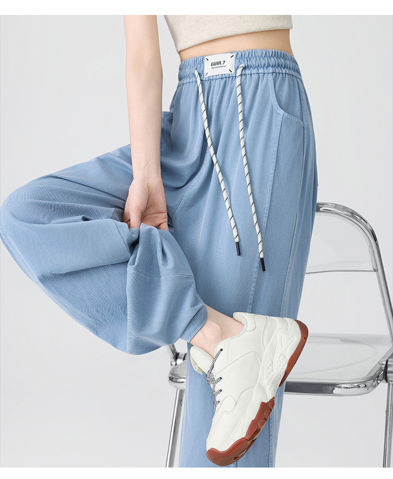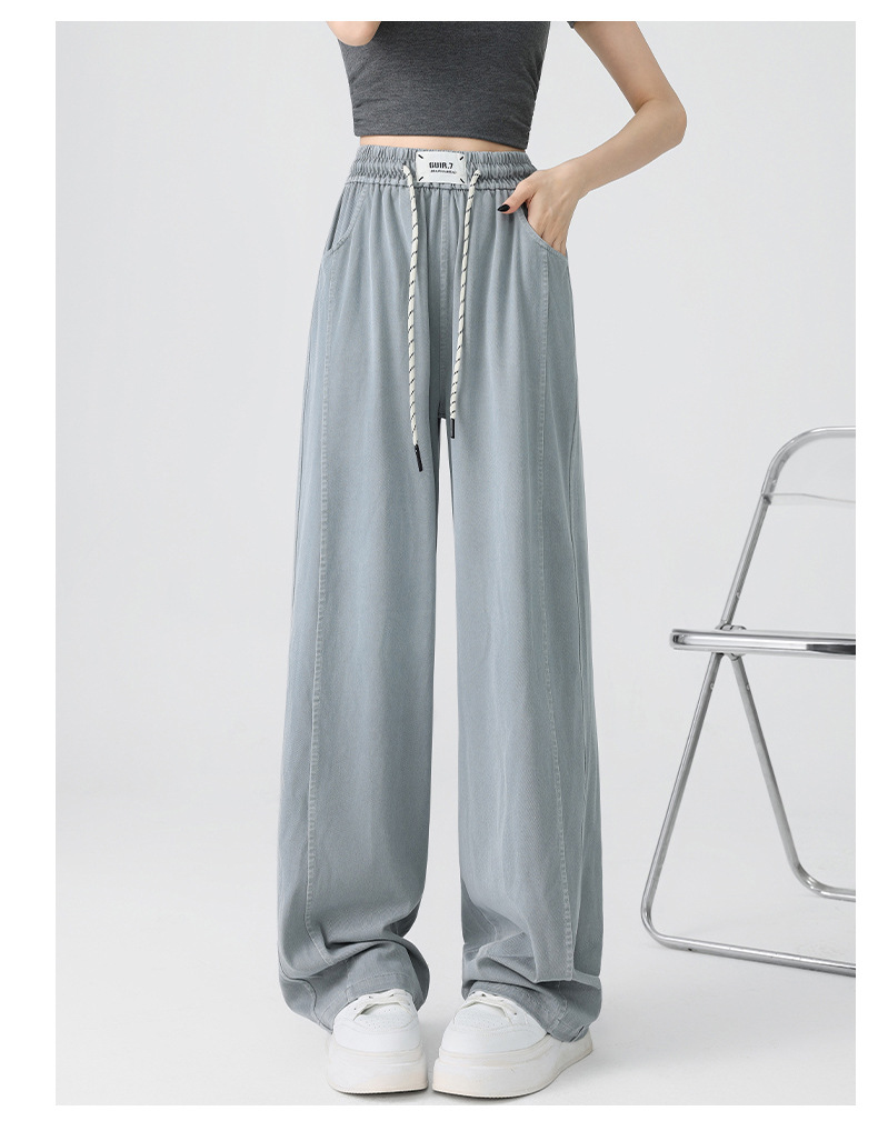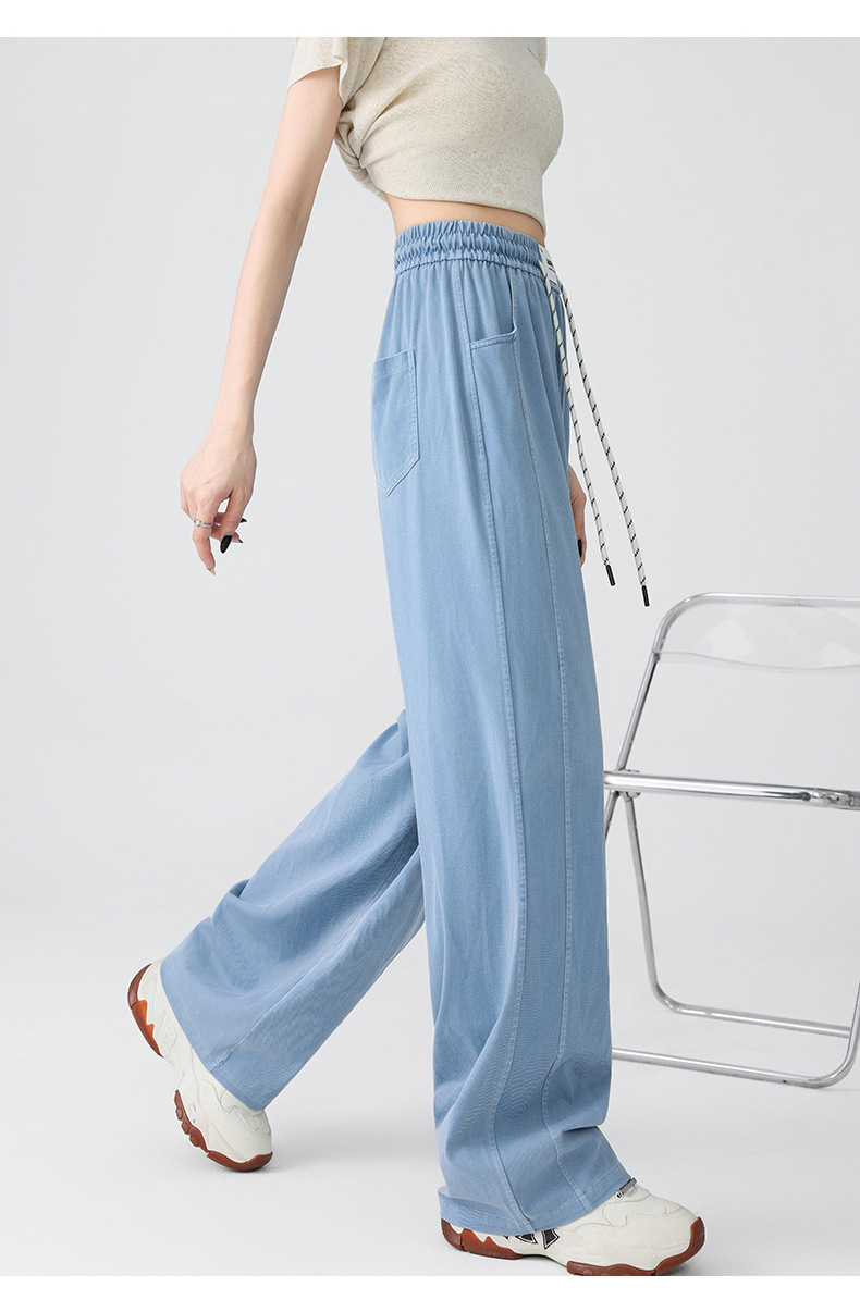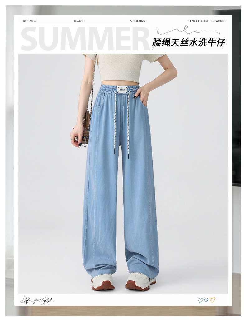 2025 새로운 스타일 허리 로프 텐셀 워시 청바지 여성 플러스 사이즈 여름 얇은 탄성 허리 와이드 레그 드레이프 스트레이트 바지스토어 가기