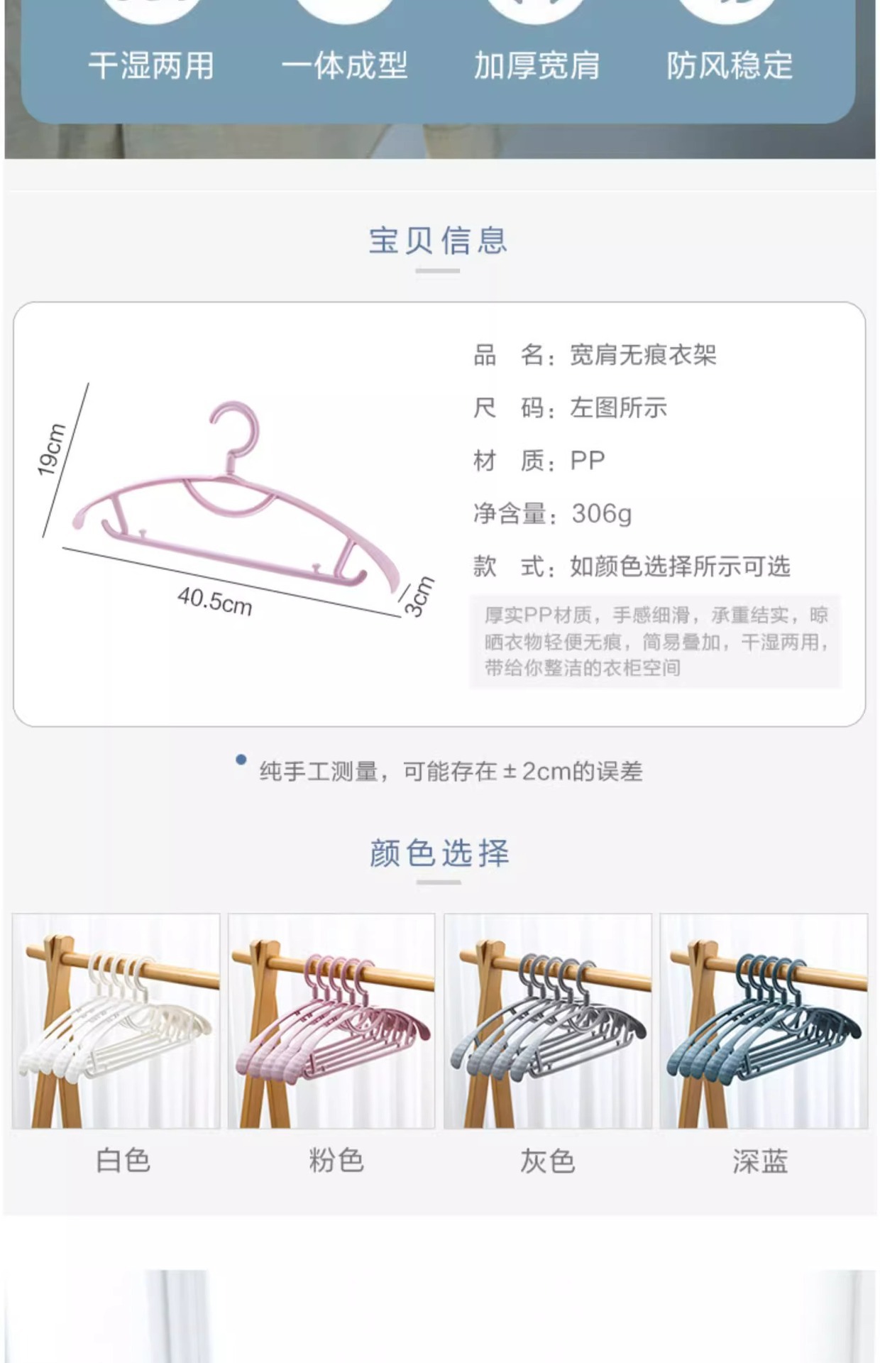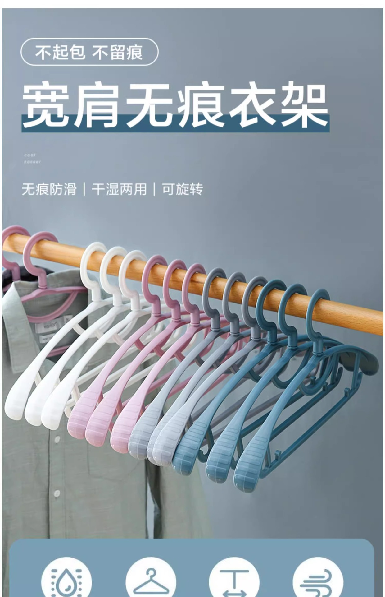 플라스틱 넓은 어깨 걸이 가정용 원활한 성인용 미끄럼 방지 옷 옷걸이 옷 랙 의류 지원 옷장 옷 랙스토어 가기