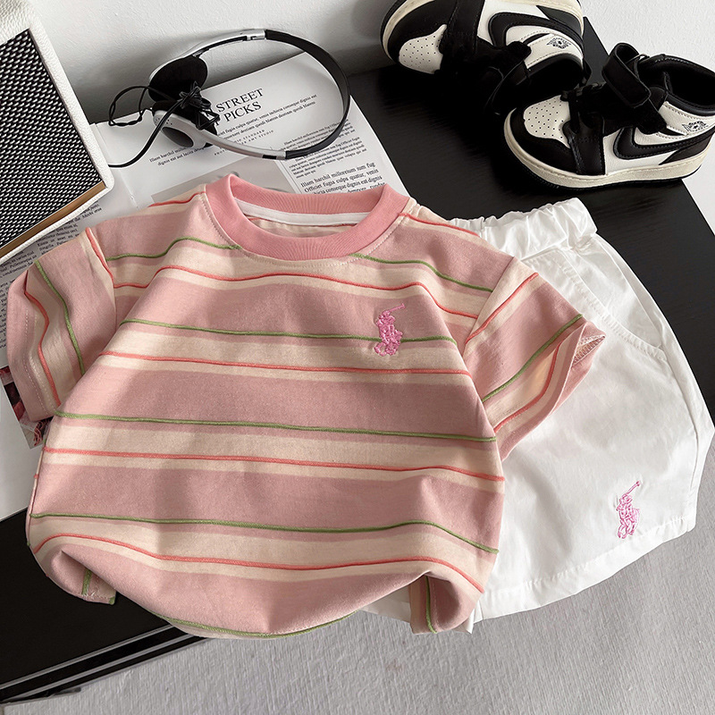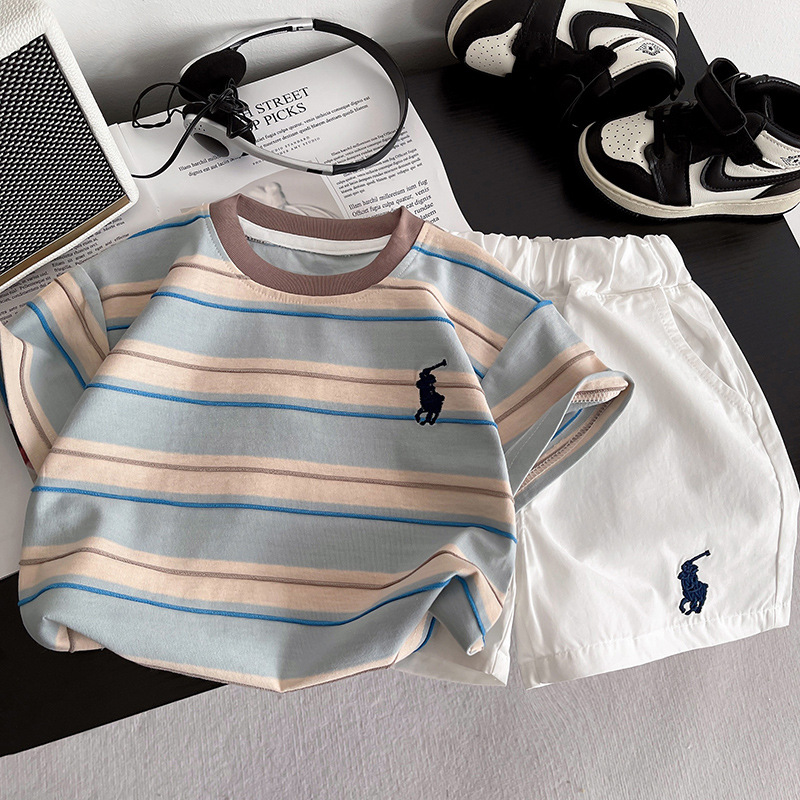 소년 여름 정장 2025 새로운 어린이 반팔 줄무늬 여름 한국 스타일 느슨한 얇은 옷 소년 잘 생긴