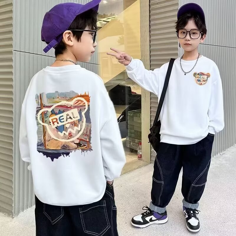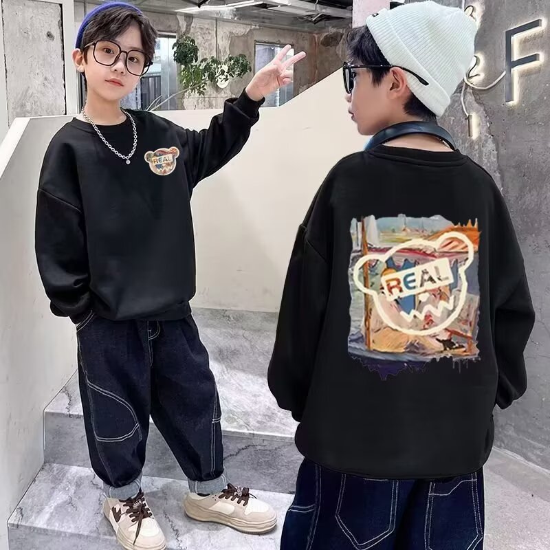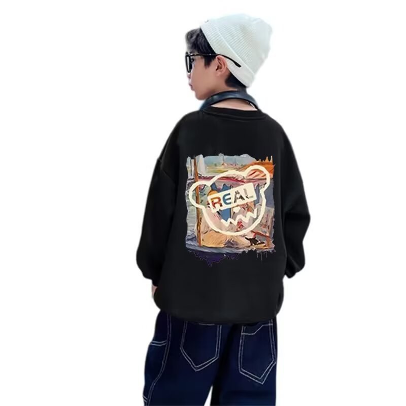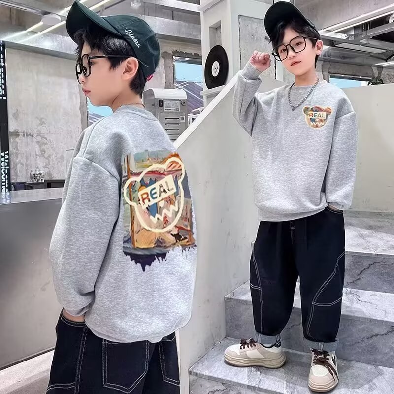 어린이 의류 소년 잘 생긴 스웨트 셔츠 2024 새로운 어린이 가을 및 겨울 캐주얼 올 매치 보이 겨울 프라이드 스트리트 겨울 의류스토어 가기