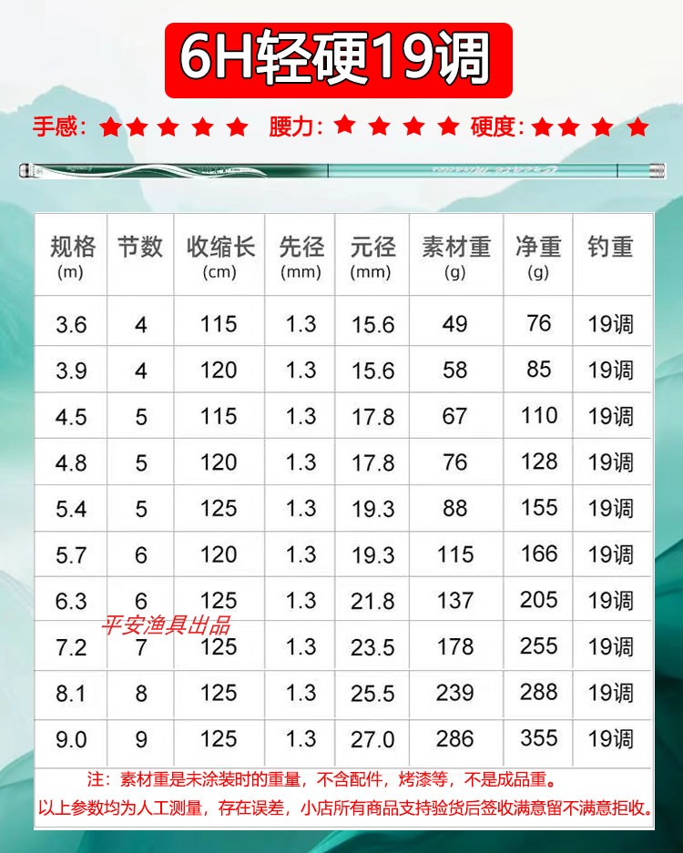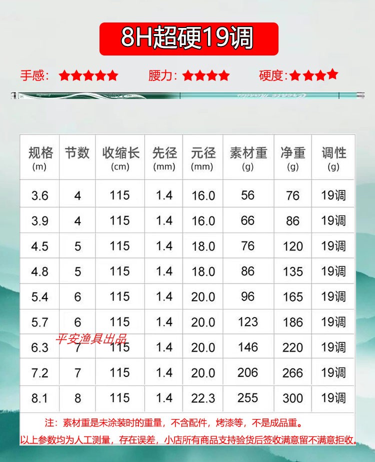 • 4.8米6H19调【江河湖库.飞】+竿稍+礼包