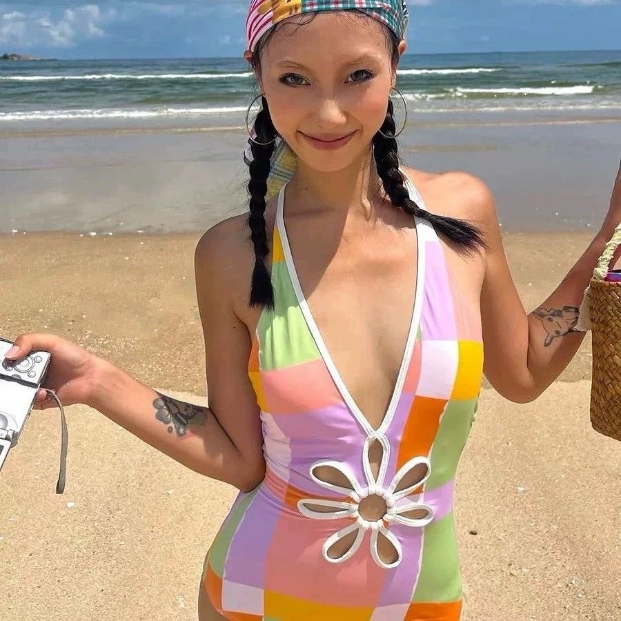 새로운 무지개 색상 중공 꽃 신선하고 심플한 스타일의 세련된 원피스 수영복 여성을 위한 고급 해변 휴가 수영복스토어 가기