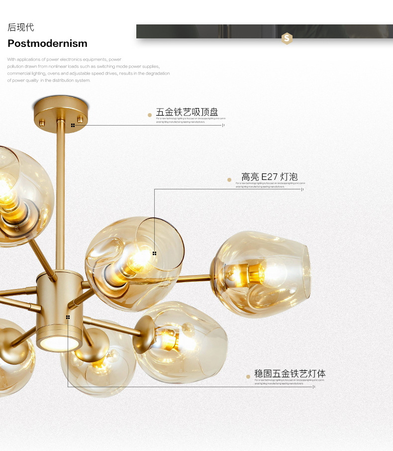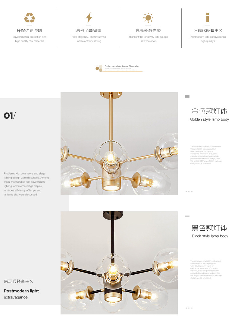공장 국경 포스트 모던 간단한 램프 창조적 인 빛 고급 침실 매직 콩 분자 램프 북유럽 스타일 거실 샹들리에스토어 가기