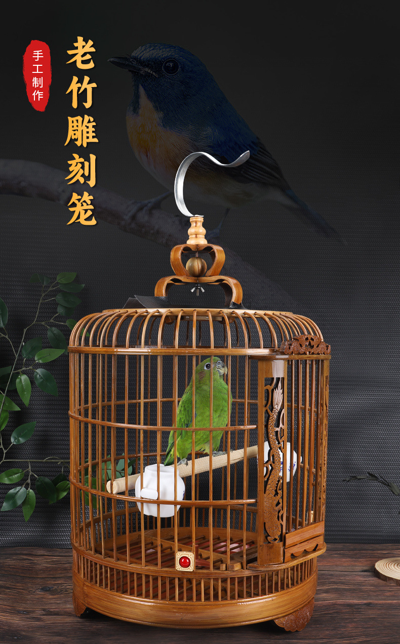 새 케이지 큰 풀 세트 대나무 라운드 케이지 대나무 케이지 도매 아트 무야 오래된 대나무 마이니아 앵무새 스루 크로스 새 케이지스토어 가기