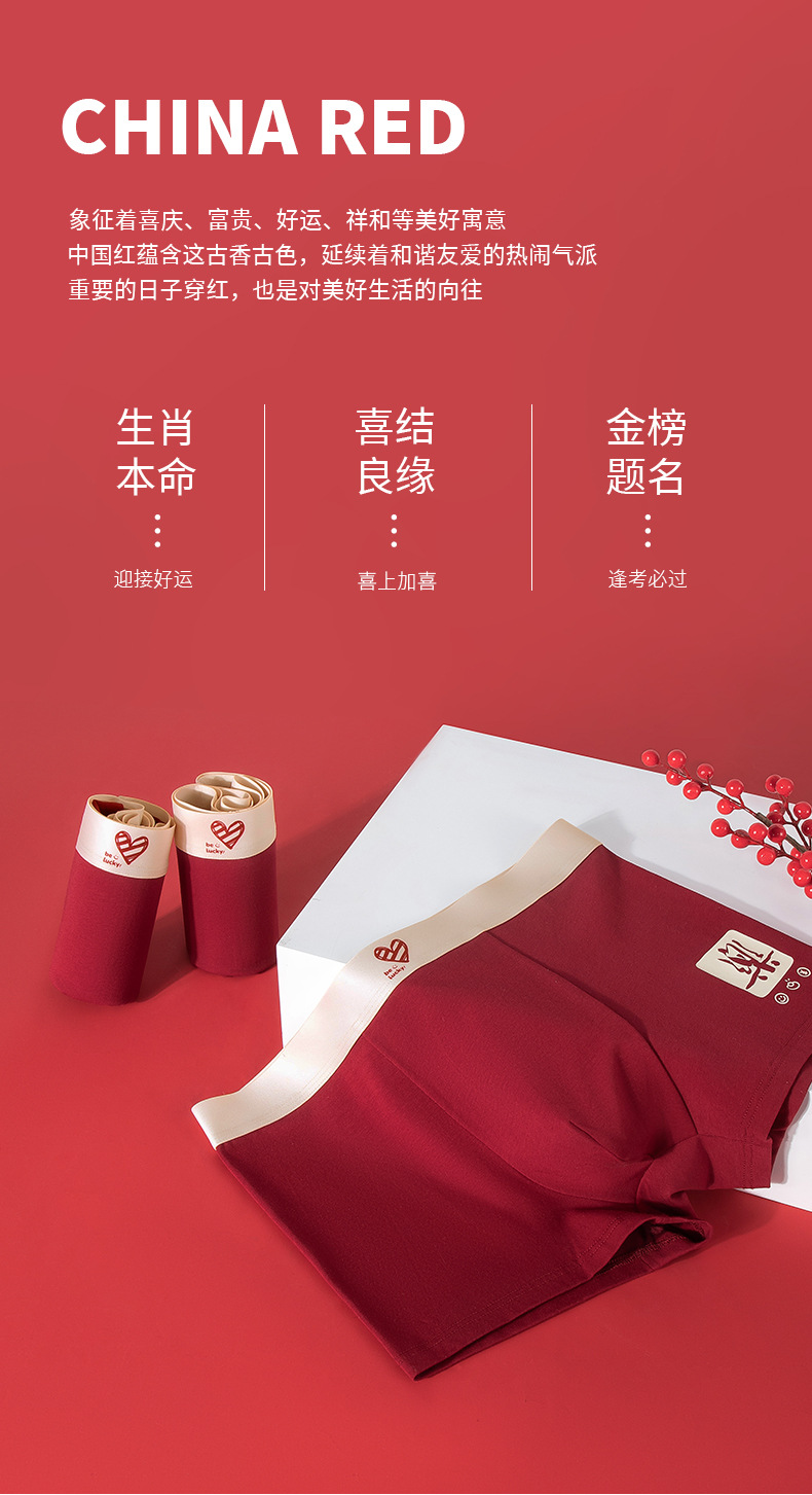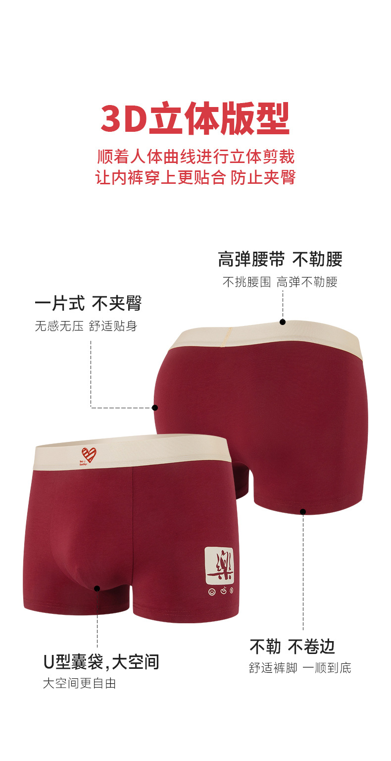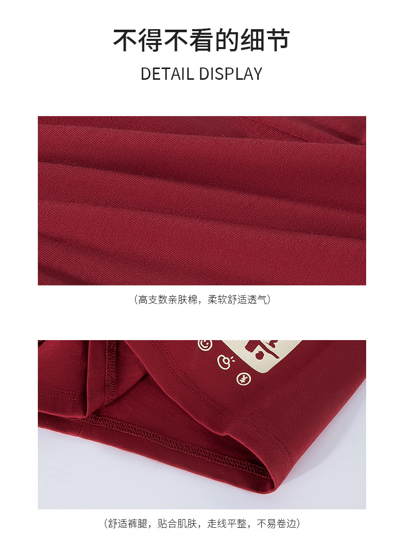 올해 드래곤 레드 남성 속옷 퓨어 코튼 신년 축제 복서 소년 포춘 바지 TikTok 폭발