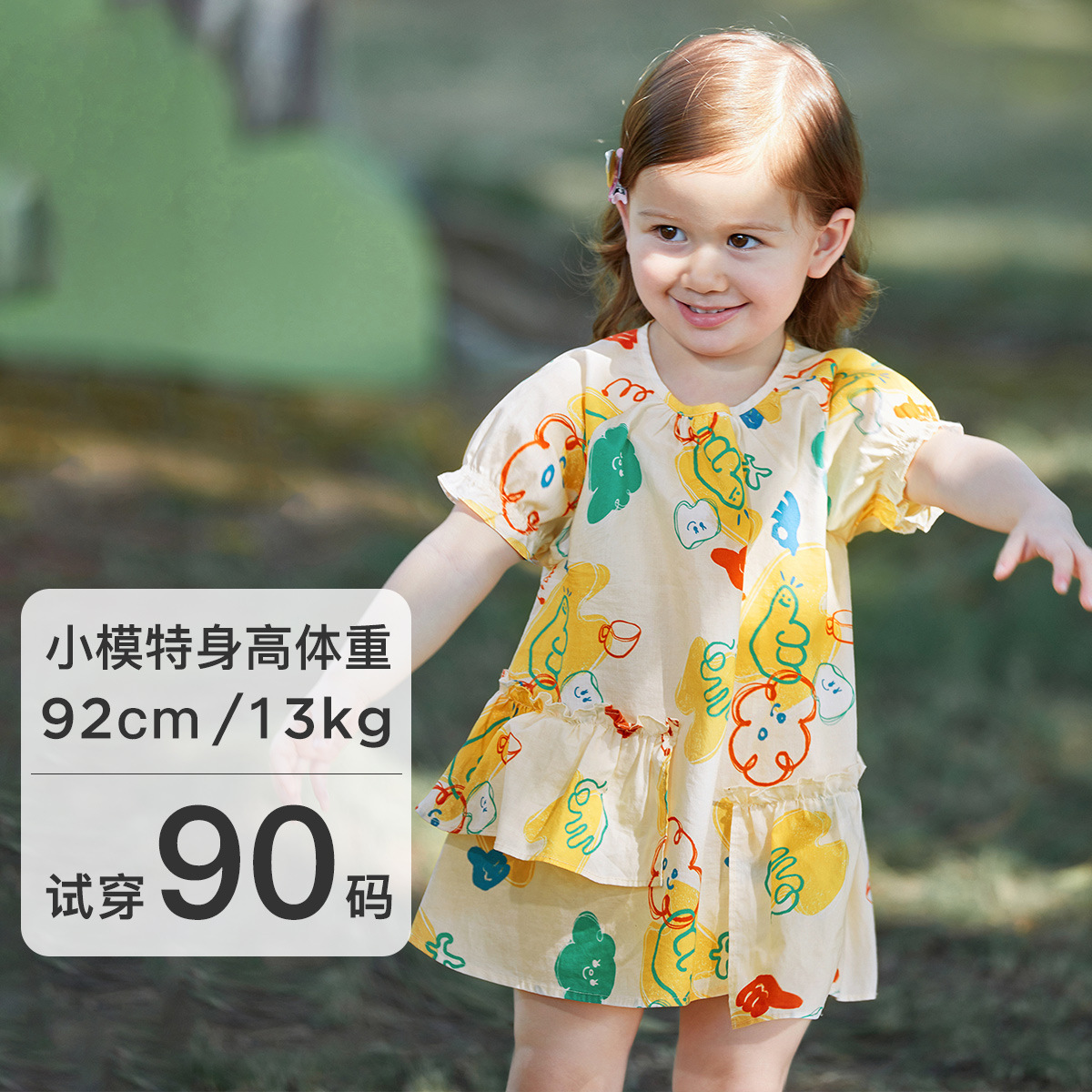童贝童装2024年夏季新款女童满印碎花裙子女童可爱甜美涂鸦连衣裙스토어 가기