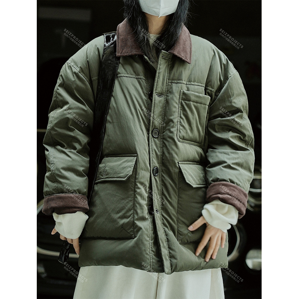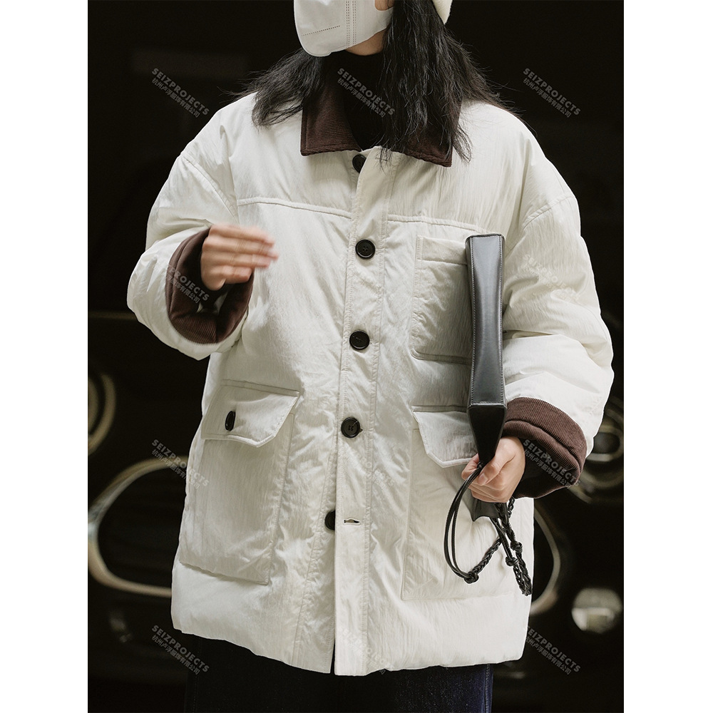 겨울 새 한국 스타일 빈티지 콘트라스트 다운 재킷 중간 길이의 콜드 90 화이트 덕 다운 스티칭 대비 여성 두꺼운 코트스토어 가기