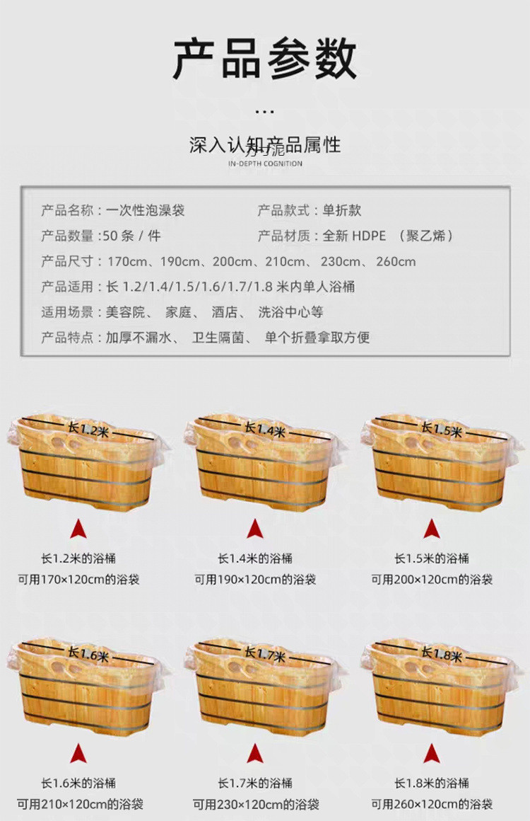 • Hongsheng 120*260 1인용 욕조에 적합 - 50개/팩 [두꺼운 단일 접이식]