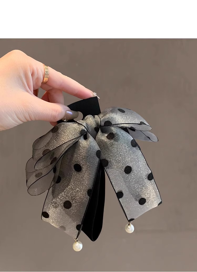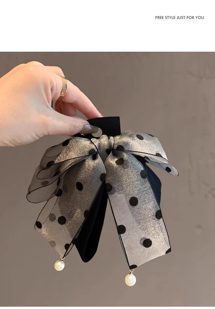 한국어 버전의 새틴 눈 거즈 점 활 그립 클립 빈티지 진주 펜던트 기질 머리 상어 클립 머리핀 여성스토어 가기