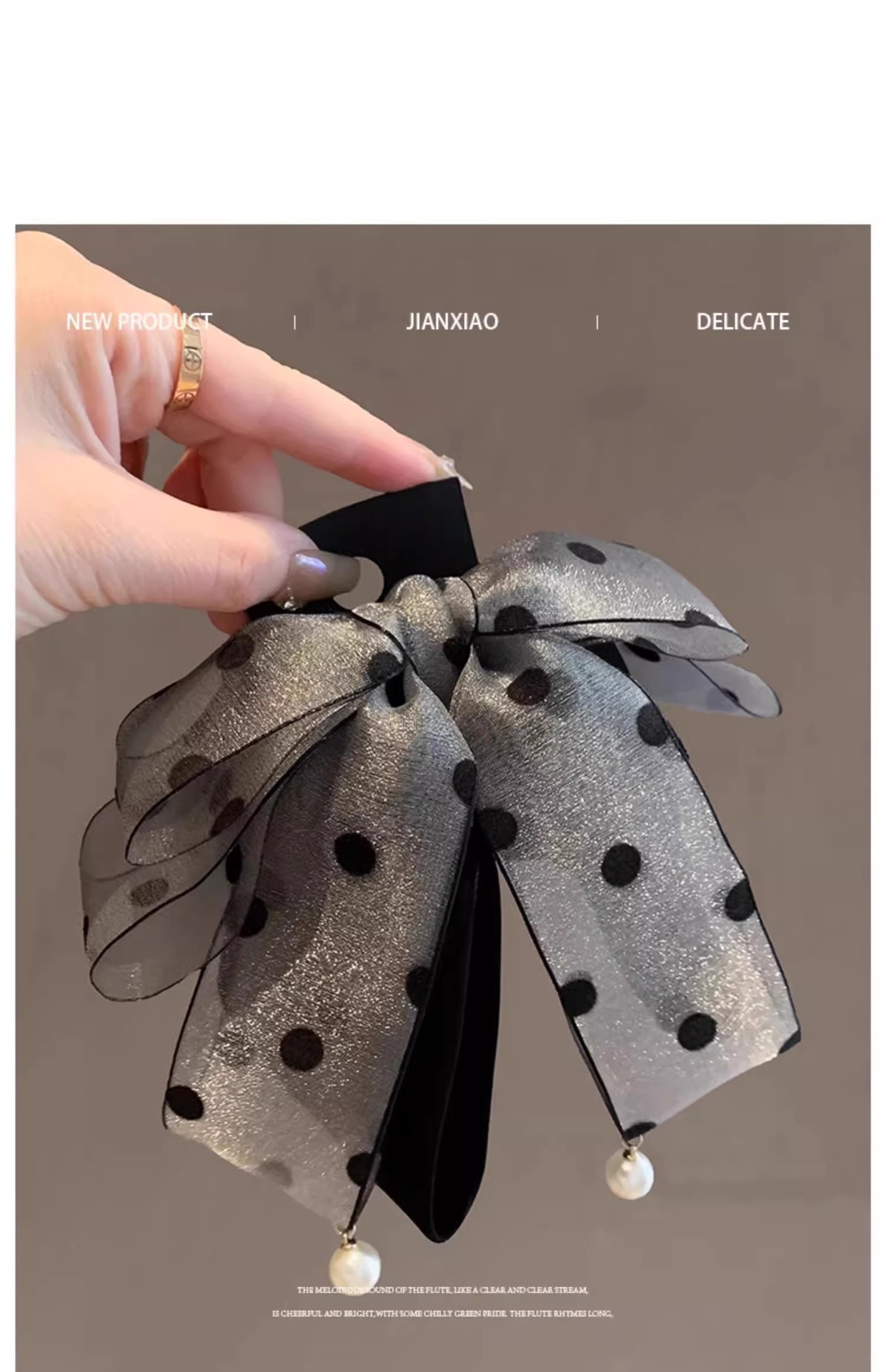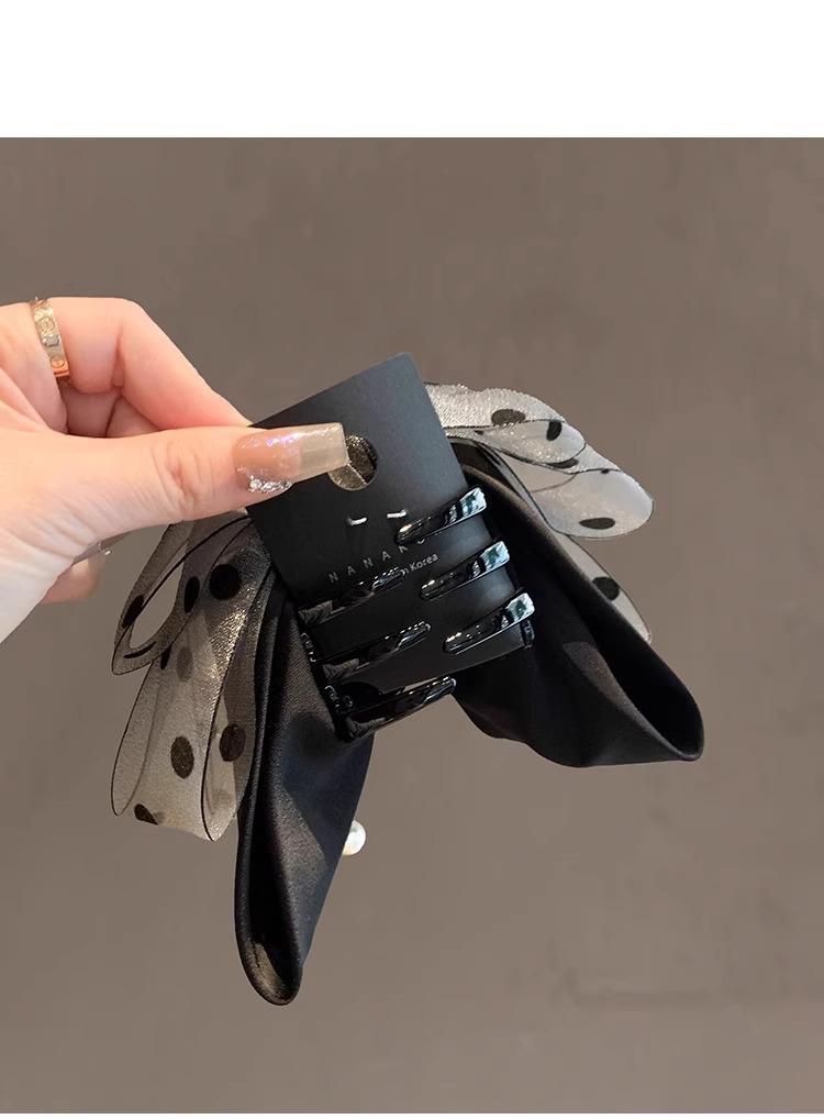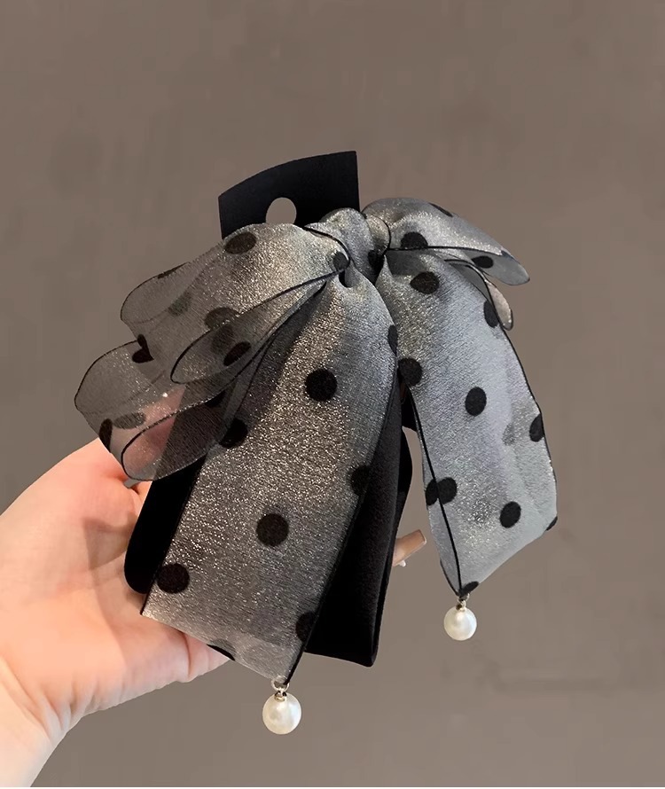 한국어 버전의 새틴 눈 거즈 점 활 그립 클립 빈티지 진주 펜던트 기질 머리 상어 클립 머리핀 여성