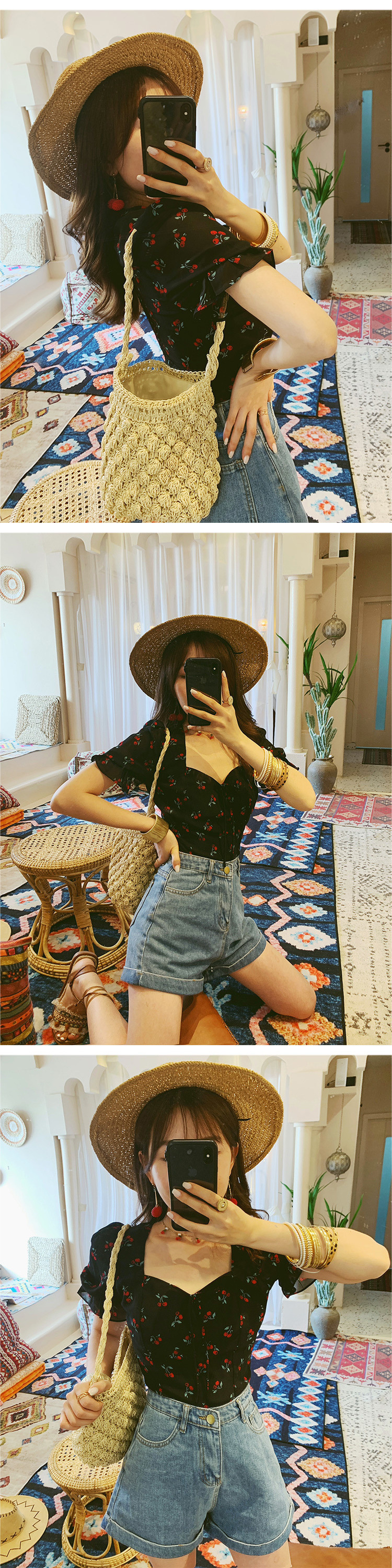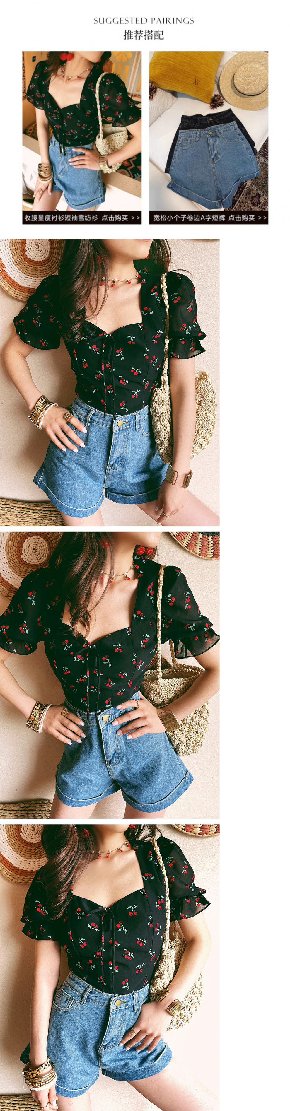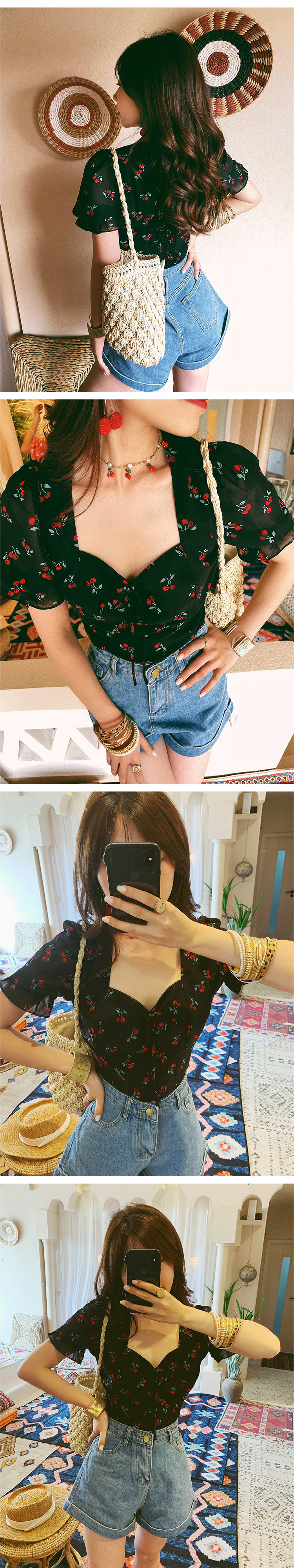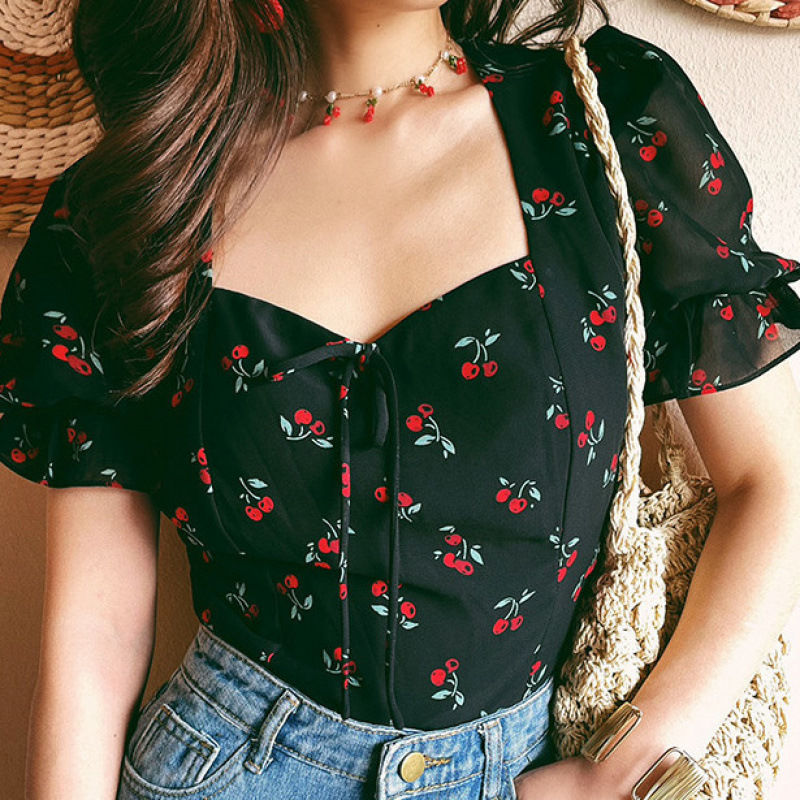 플러스 사이즈 통통녀 레트로 블랙 반팔 쉬폰 셔츠 여름 휴가 스타일 꽉 허리 슬리밍 소녀의 올 매치 셔츠 탑스토어 가기