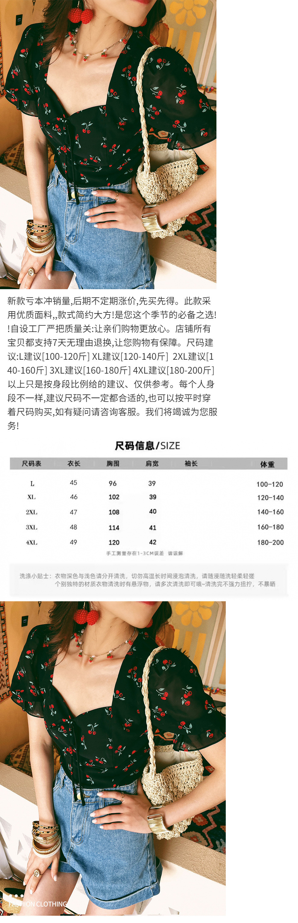 플러스 사이즈 통통녀 레트로 블랙 반팔 쉬폰 셔츠 여름 휴가 스타일 꽉 허리 슬리밍 소녀의 올 매치 셔츠 탑
