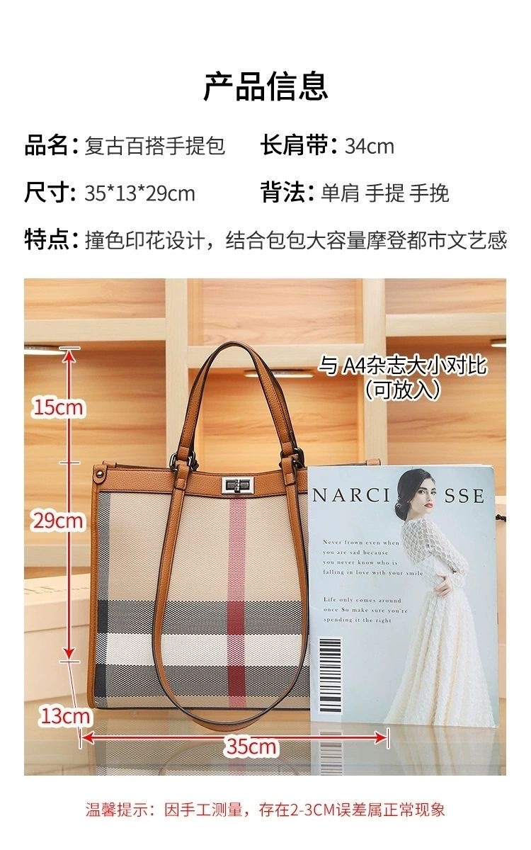 여성용 가방 2025 새로운 격자 무늬 대용량 토트 백 고급 여성용 핸드백 격자 무늬 싱글 숄더 대형 가방스토어 가기