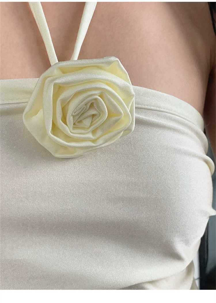 새로운 스타일 향기로운 스타일 3 차원 동백 솔리드 컬러 트라이앵글 바디-슬리밍 스트랩리스 간단한 해변 휴가 수영복