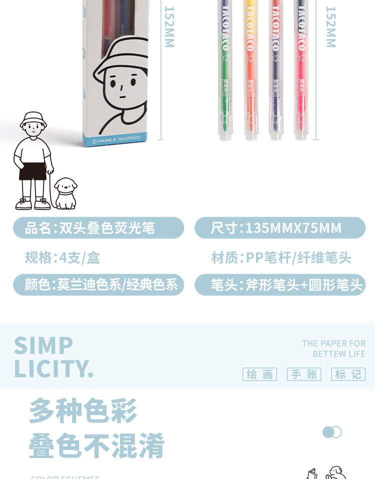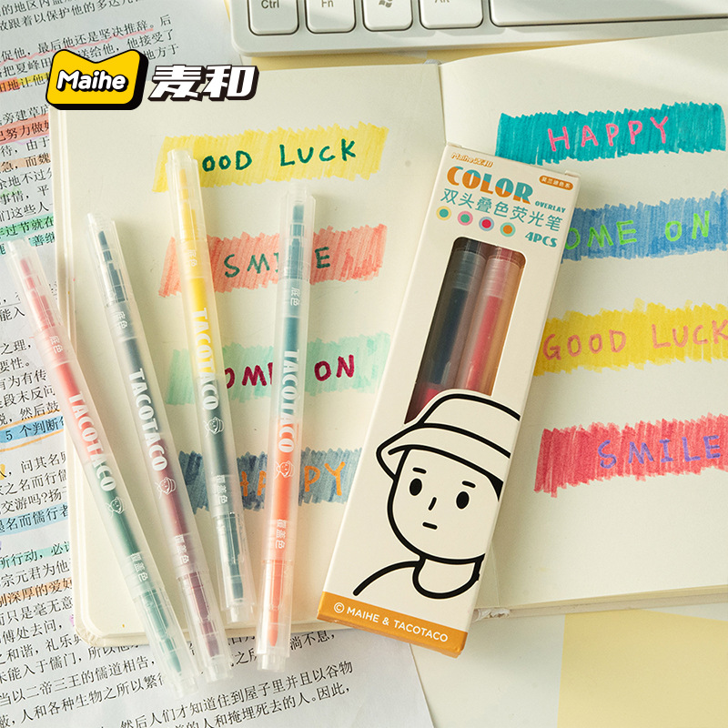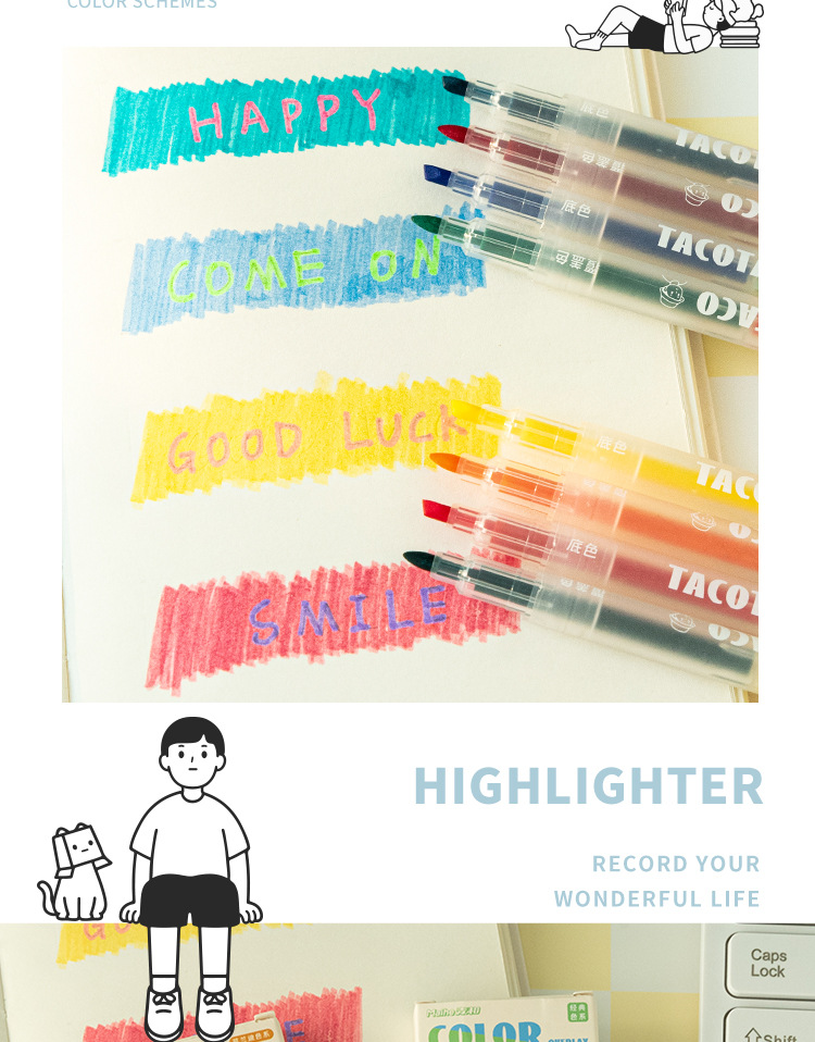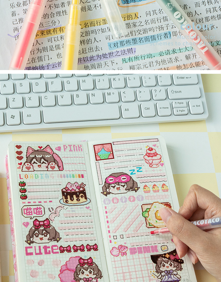 타코 타코 더블 헤드 컬러 하이 라이터 학생 손 계정 멀티 컬러 펜 모란 디 클래식 컬러 모자 당김 마크 펜스토어 가기