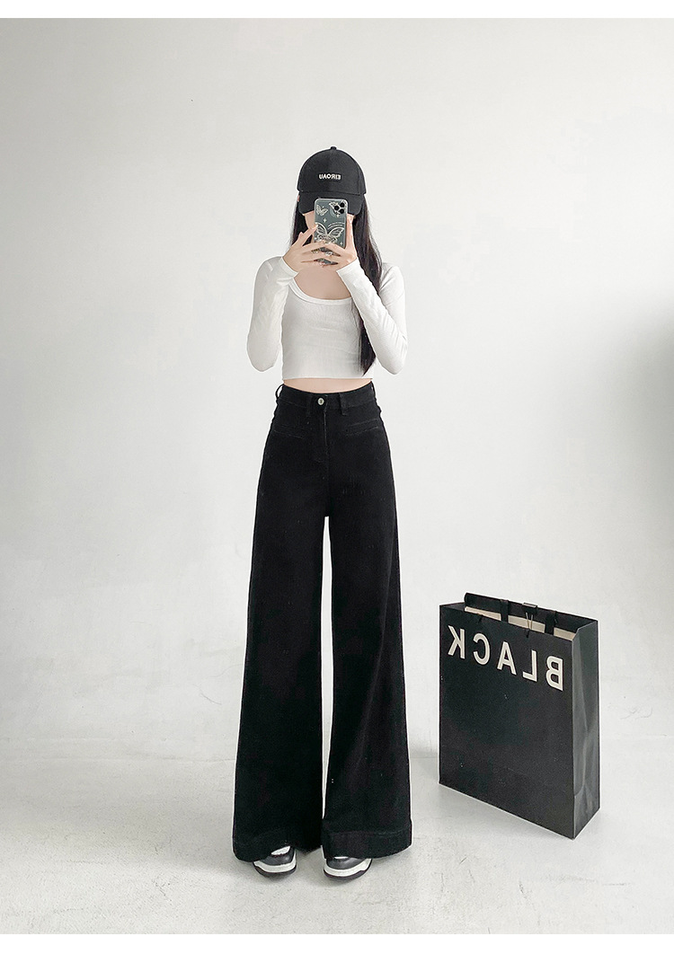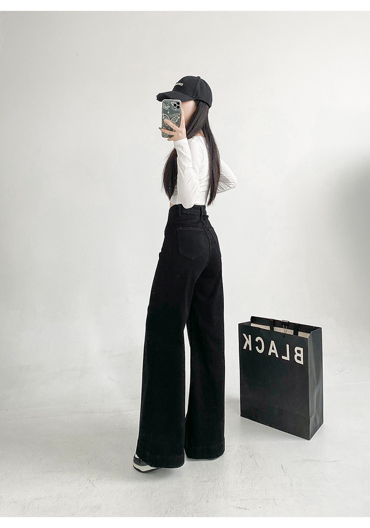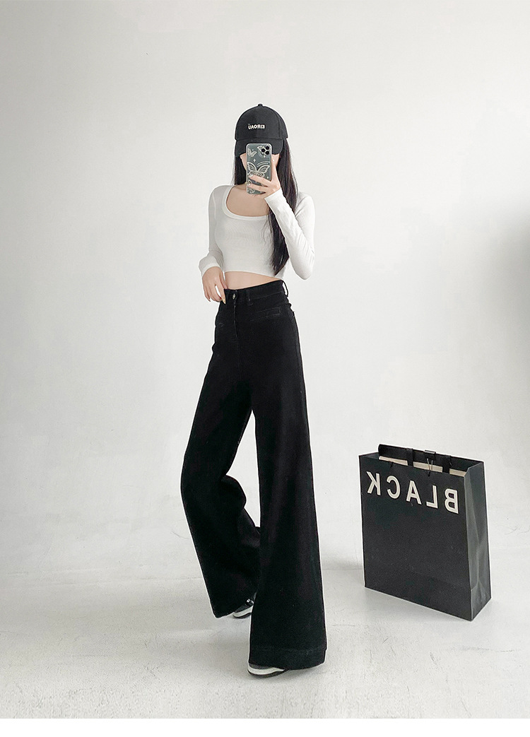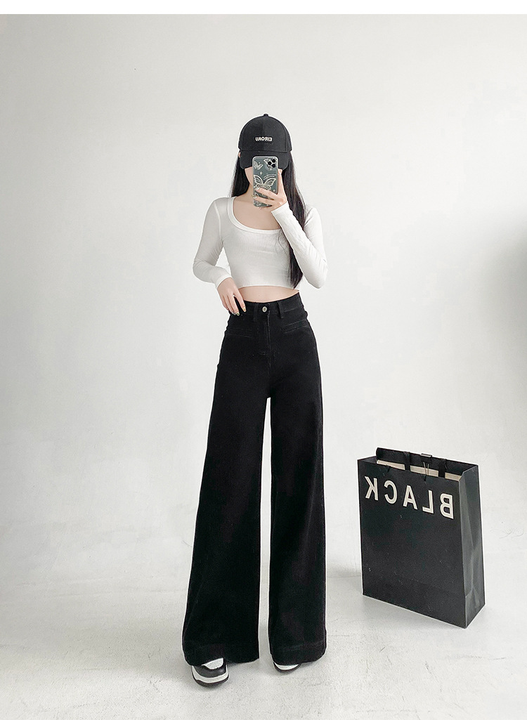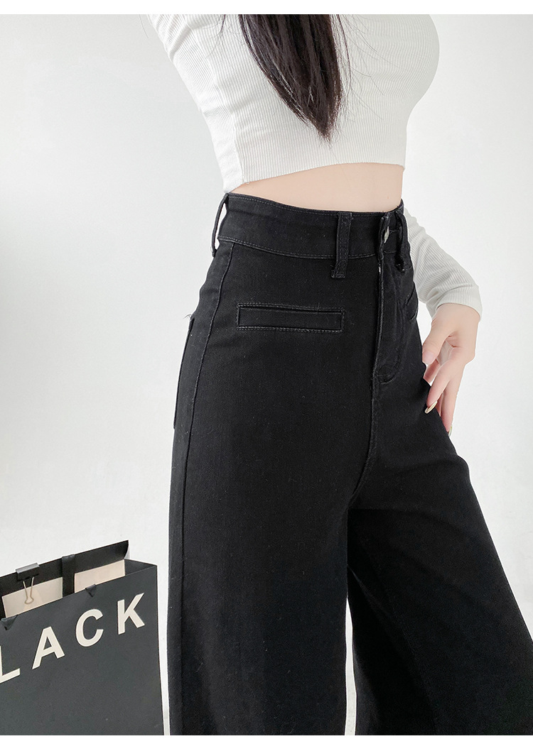 검은 스트레치 다목적 높은 허리 슈퍼 와이드 다리 청바지 여성의 2024 가을 새로운 육체 덮개 슬림 바지스토어 가기