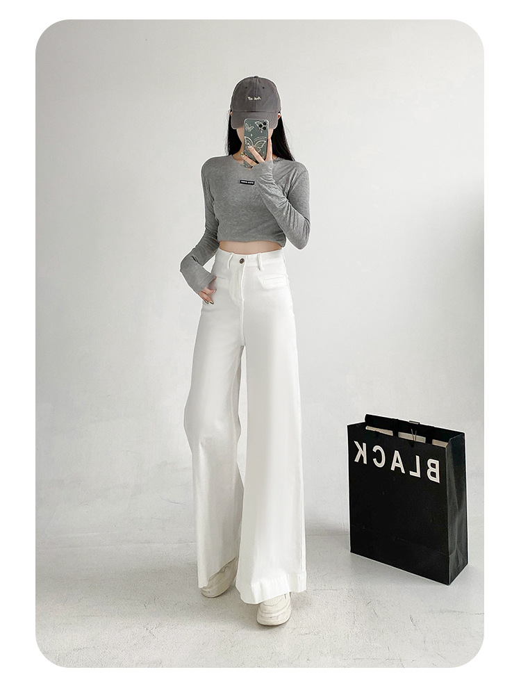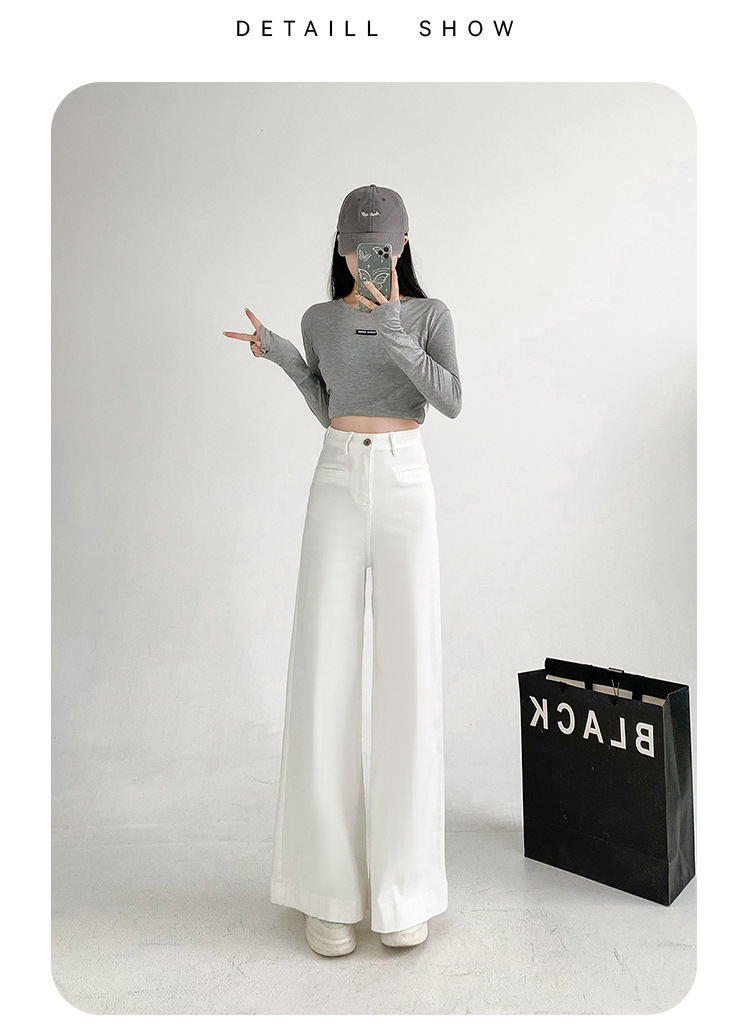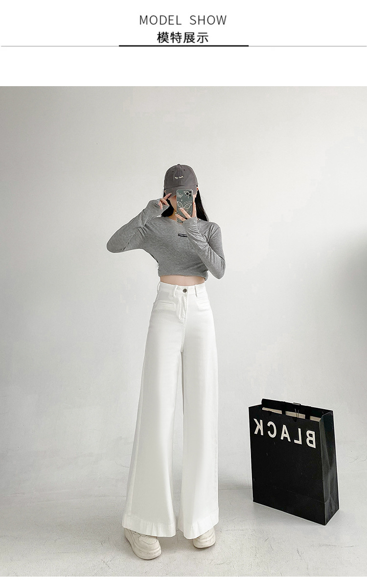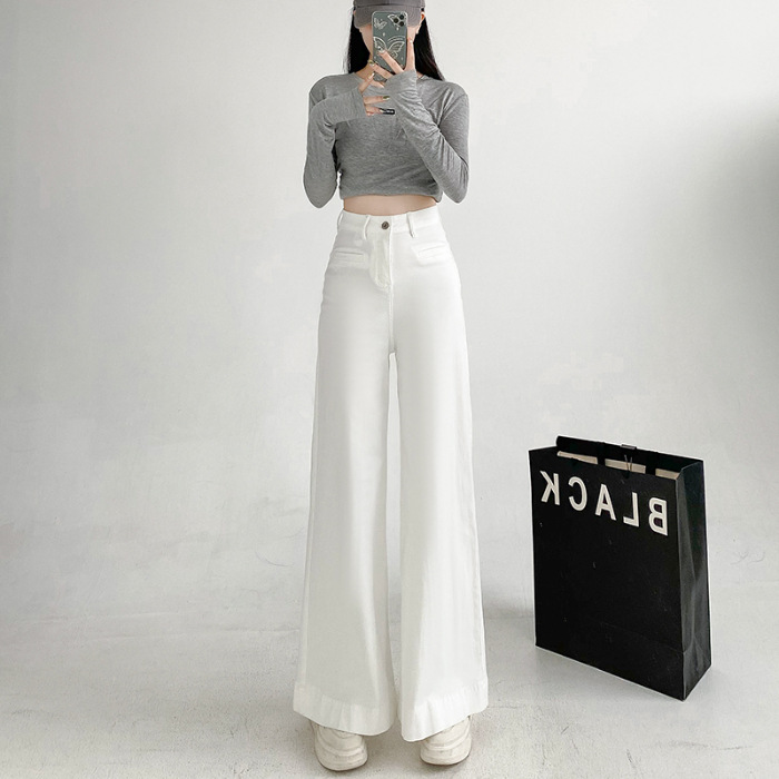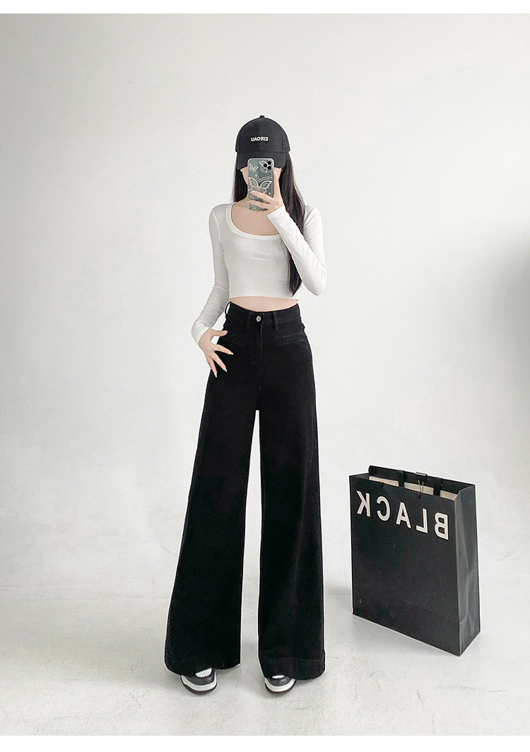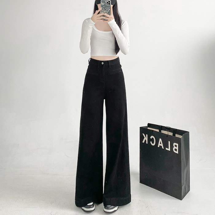 검은 스트레치 다목적 높은 허리 슈퍼 와이드 다리 청바지 여성의 2024 가을 새로운 육체 덮개 슬림 바지스토어 가기