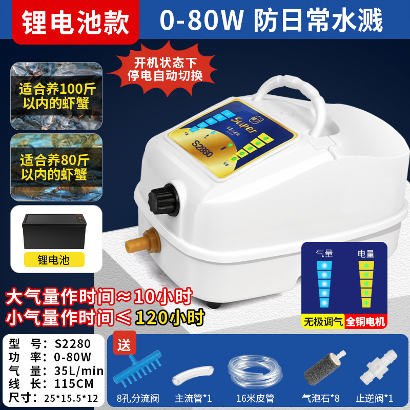 • [리튬 배터리 듀얼 코어] 80W/8 홀 - 무단계 공기 조절 ≤ 50kg 물고기
