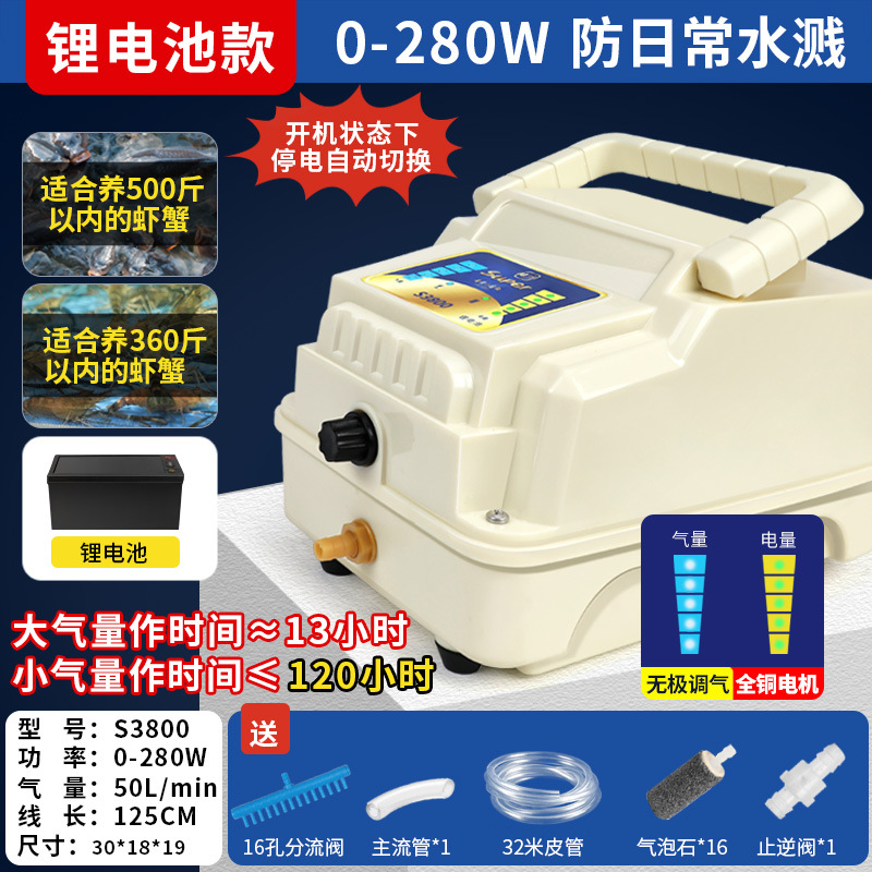 • [리튬 배터리 듀얼 코어] 600W/16홀 - 무단계 공기 조절 ≤ 450kg 물고기