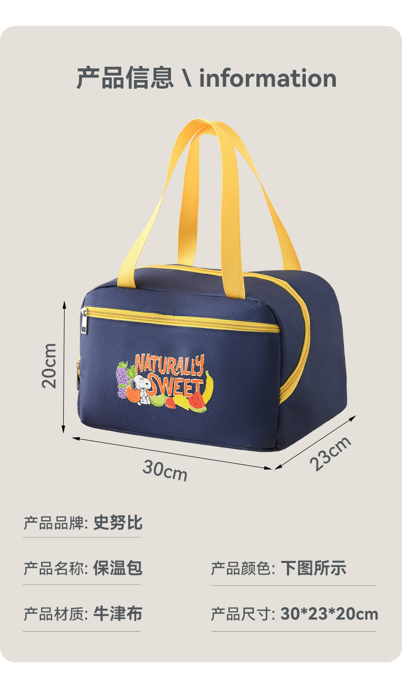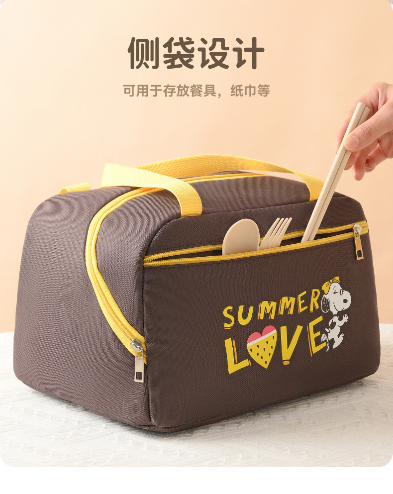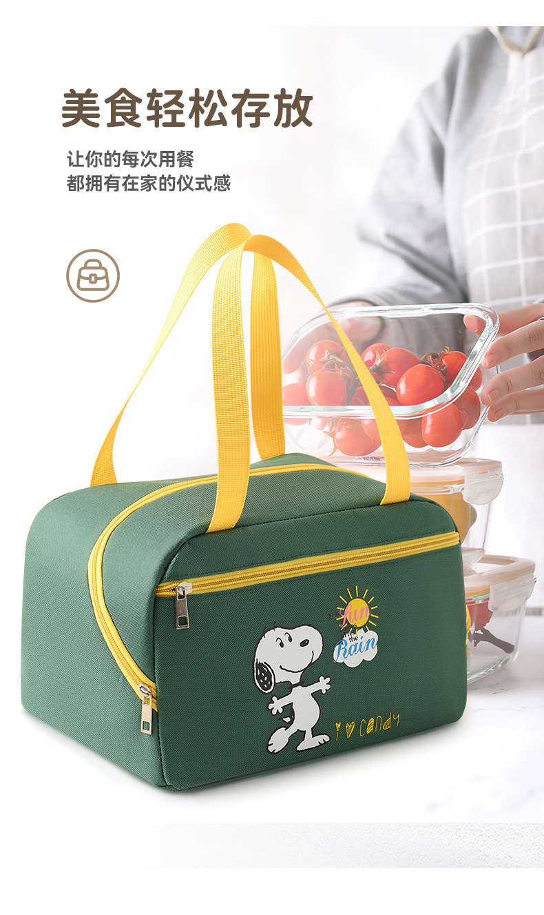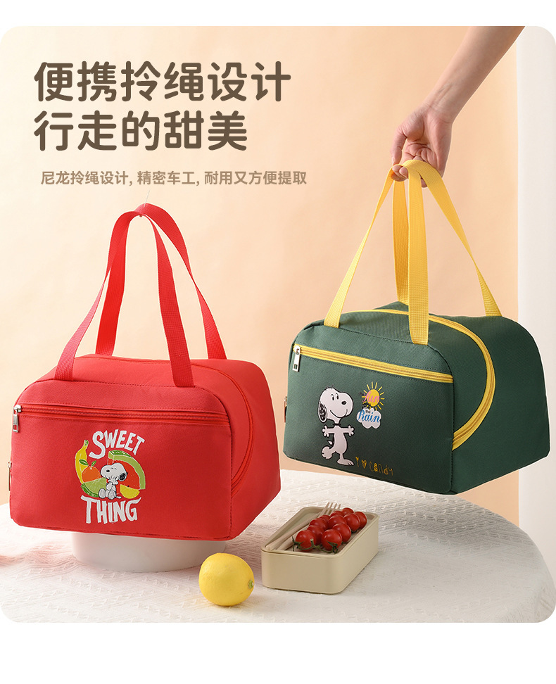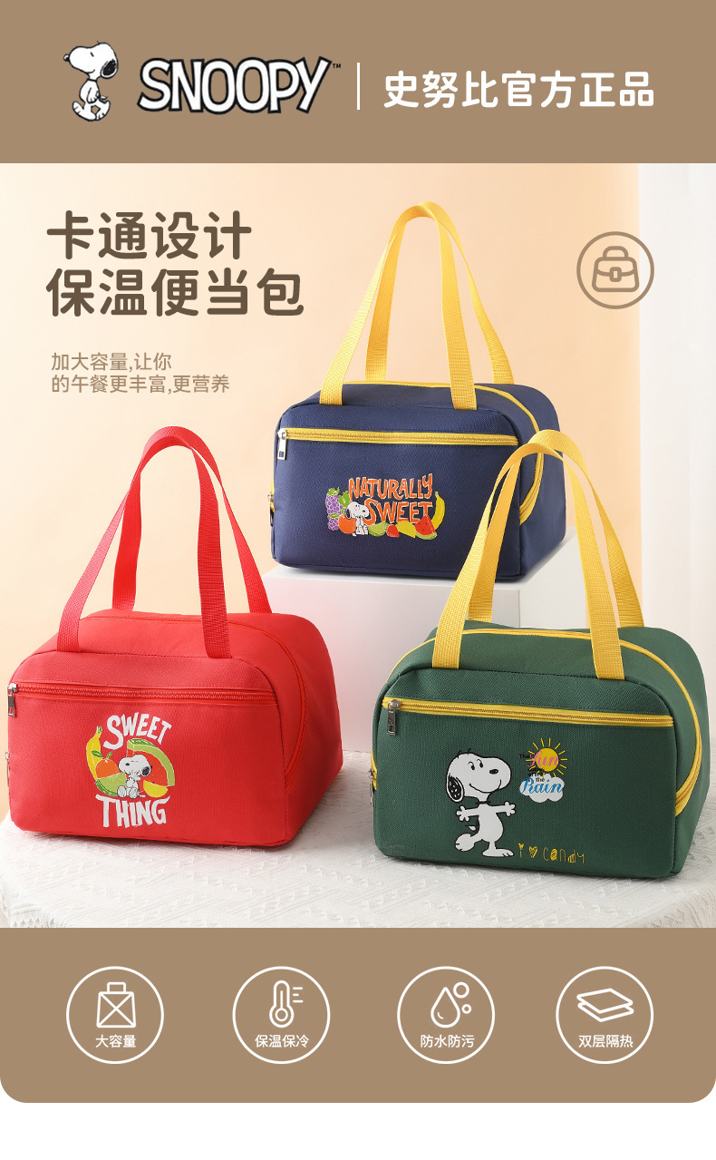 스누피 정품 단열 점심 가방 긴 휴대용 사무실 학생 도시락 가방 두꺼운 알루미늄 필름 단열 가방스토어 가기
