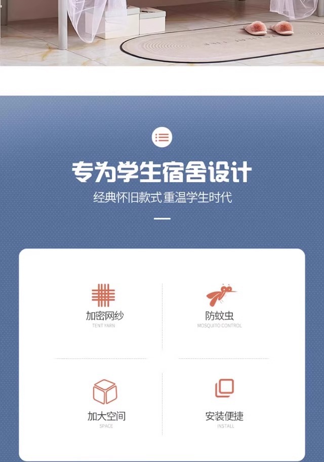2025 암호화 학생 모기장 대학생 기숙사 이층 침대 남녀 침대 커튼 모기장 방진 및 모기 방지 메쉬스토어 가기