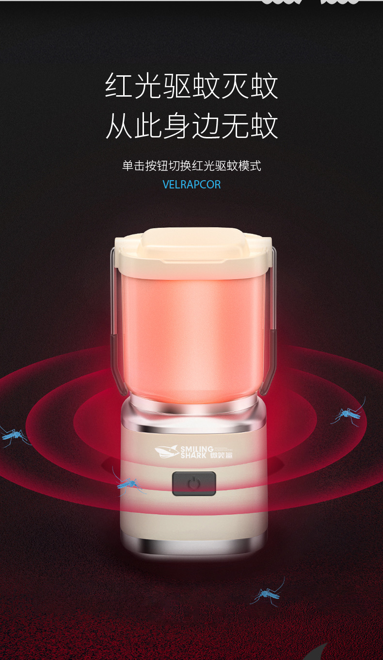 스마일 샤크 야외 캠핑 램프 충전식 텐트 램프 분위기 조명 캠핑 램프 빨간불 모기 구충제 및 모기 킬러 램프